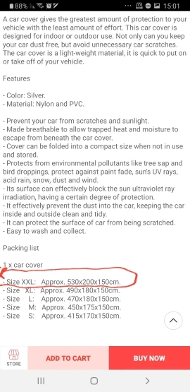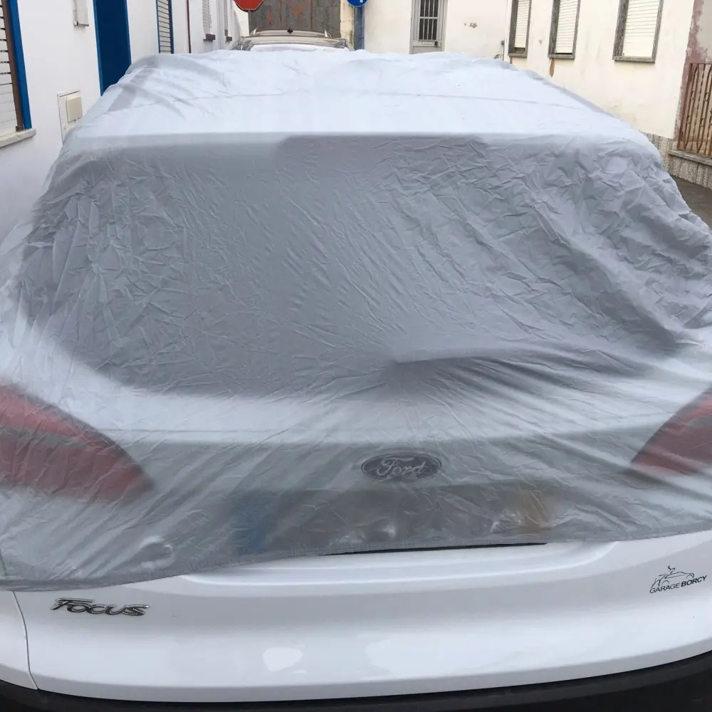 Compré esta funda para una amiga, por tanto, no puedo dar mi opinión personal sobre el producto. Según ella, la funda es un plástico de baja calidad, aunque con lo que cuesta es asumible, puesto que fundas buenas cuestan el triple como mínimo. Dice que el mayor problema se encuentra en los elásticos que agarran la funda al vehículo, dice que son muy flojos y que una racha de viento fuerte podría llevarse la funda. En cuanto al tamaño me comenta que bien, la está usando en un Hyundai Accent de los primeros modelos que se comercializaron en España.