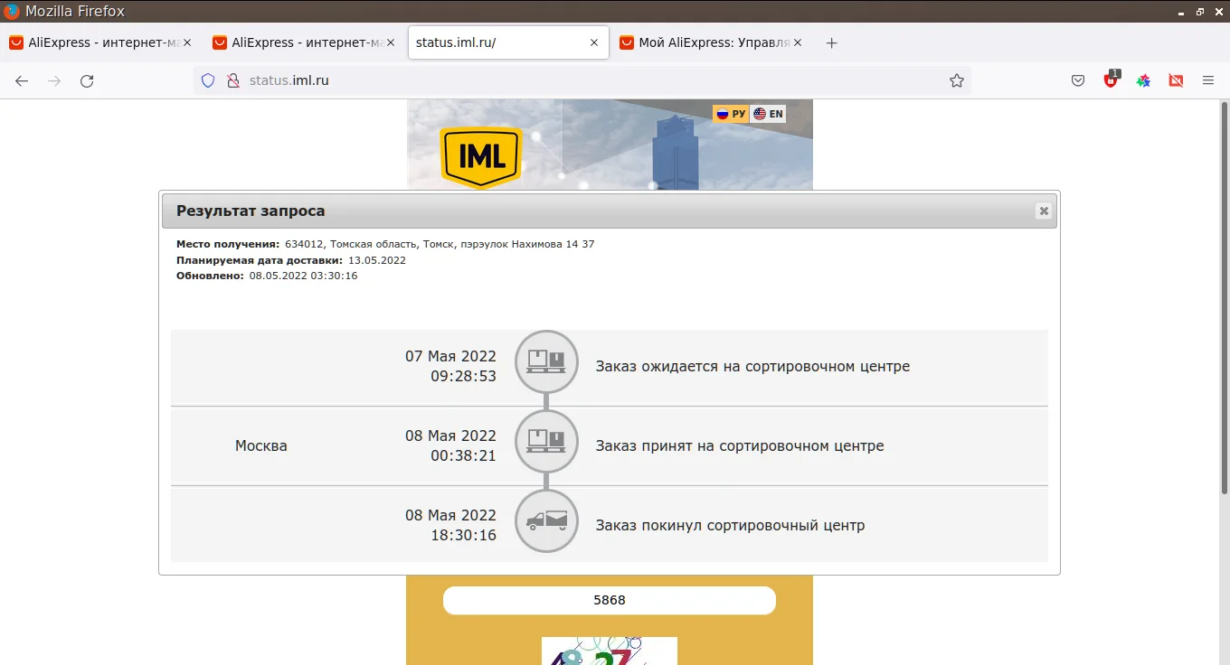Valoración de Aliexpress: