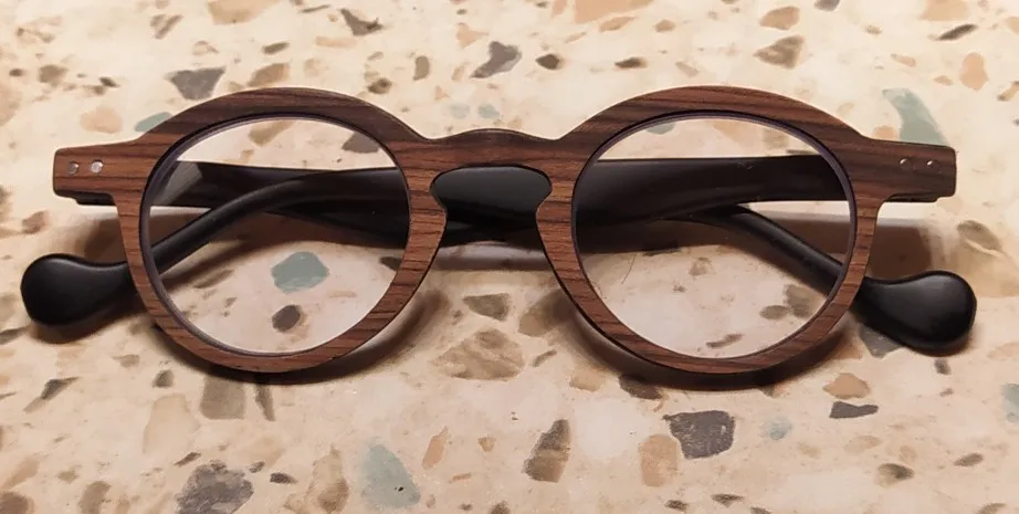 VCKA-Lentes de lectura sin marco para hombre y mujer, lentes de lectura multifocales graduales antiluz azul, gafas redondas con marco de madera + 1,00 a + 3,50