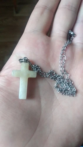 Venta al por mayor Piedra Natural Cruz colgante de piedra Natural de Piedra de Arena collar de acero inoxidable