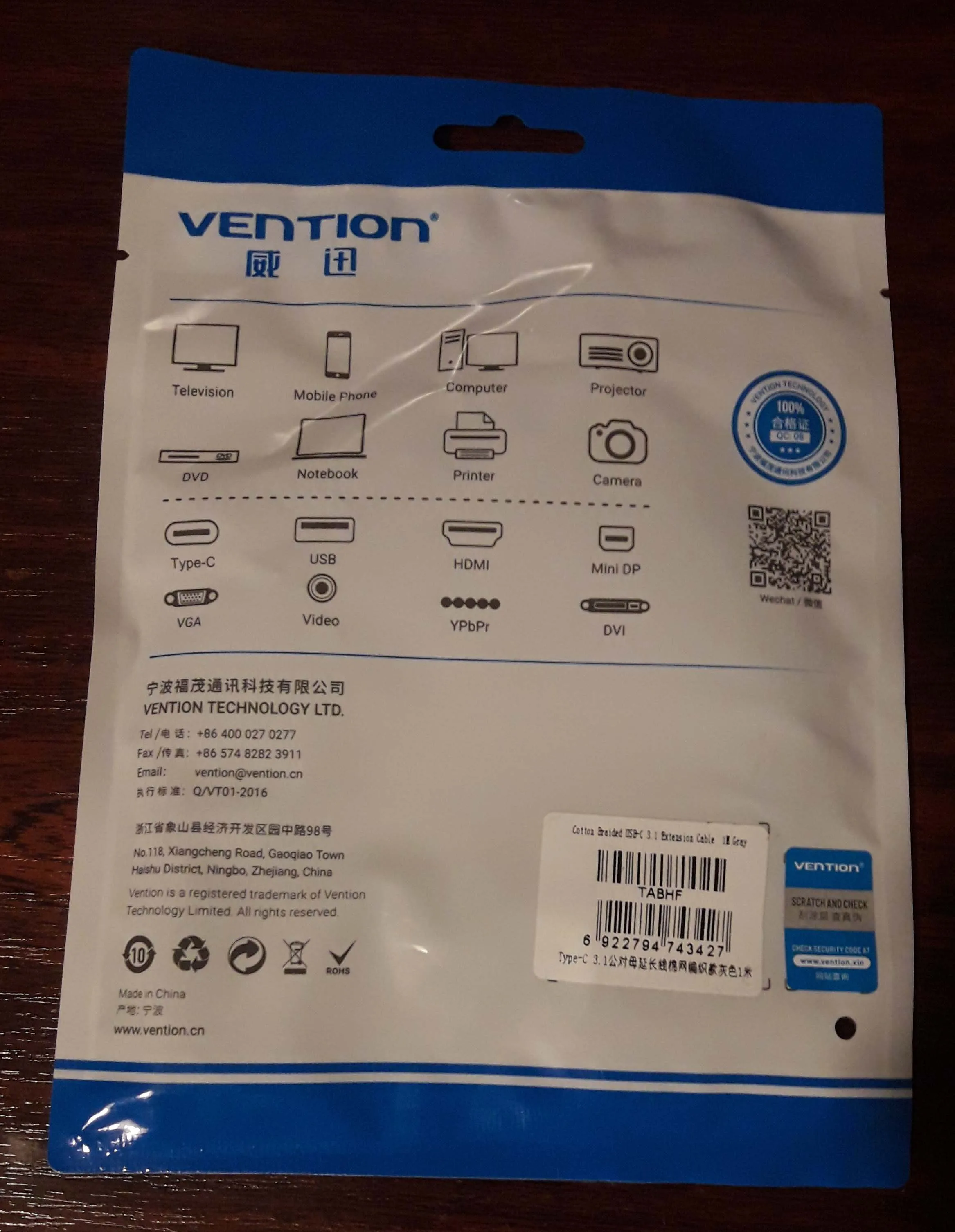 VENTION-Cable de extensión USB tipo C macho a hembra, Cable de extensión Thunderbolt 3 4K para MacBook tipo C 3,1