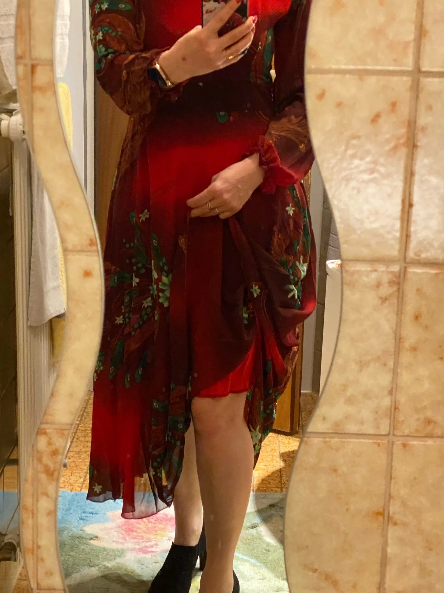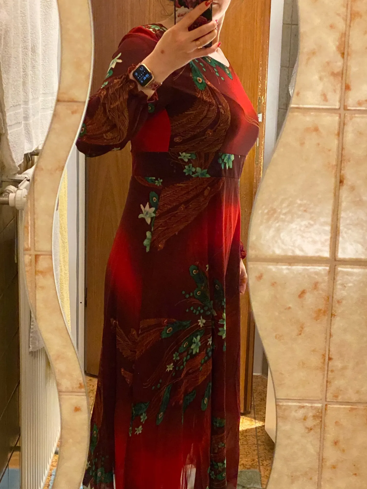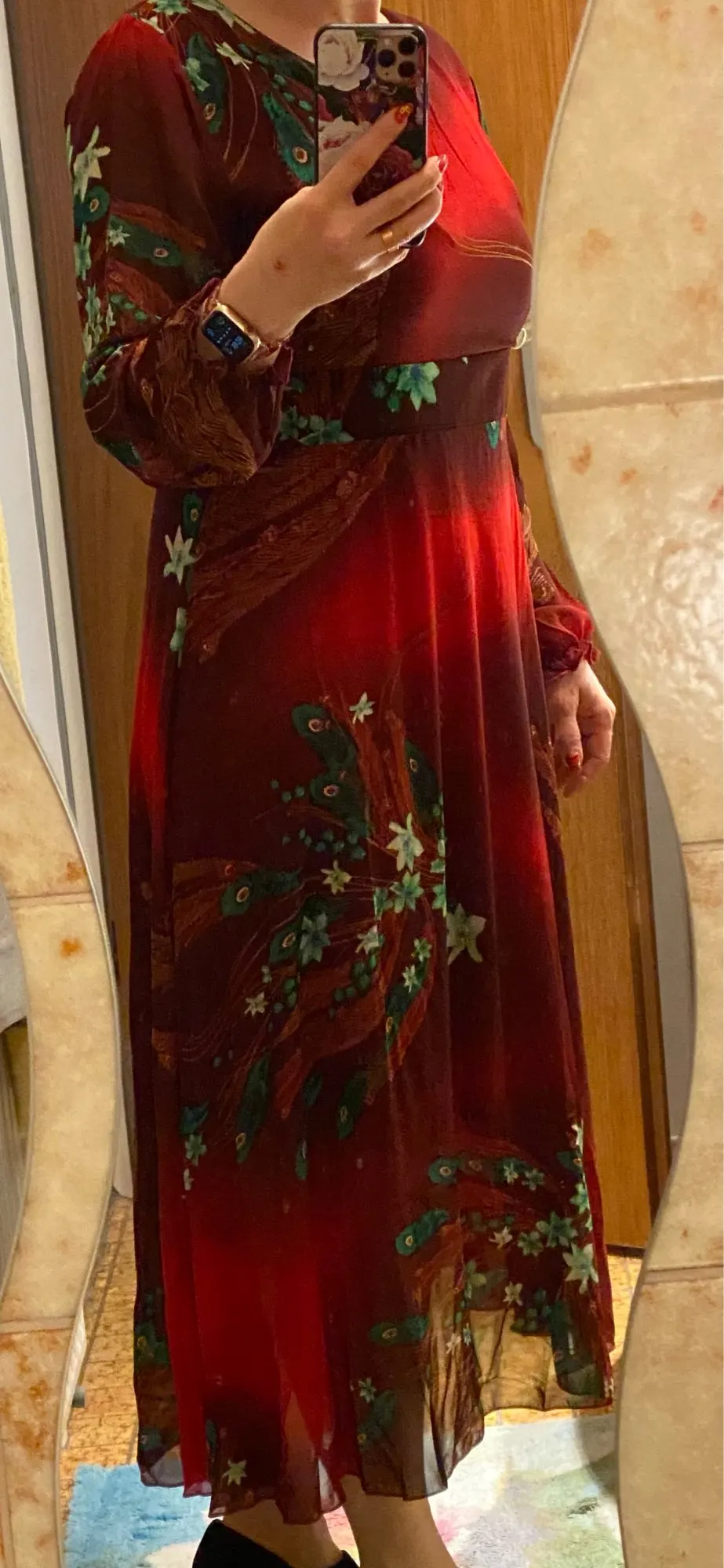 Vestido bohemio Vintage de talla grande para mujer, vestido Floral de gasa de manga larga, informal, para playa y fiesta, otoño e invierno, 2022