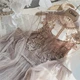 Vestido con flores de encaje para mujer, Vestido largo de gasa con mangas abullonadas, vestido de princesa con gancho, conjunto de 2 piezas 12041