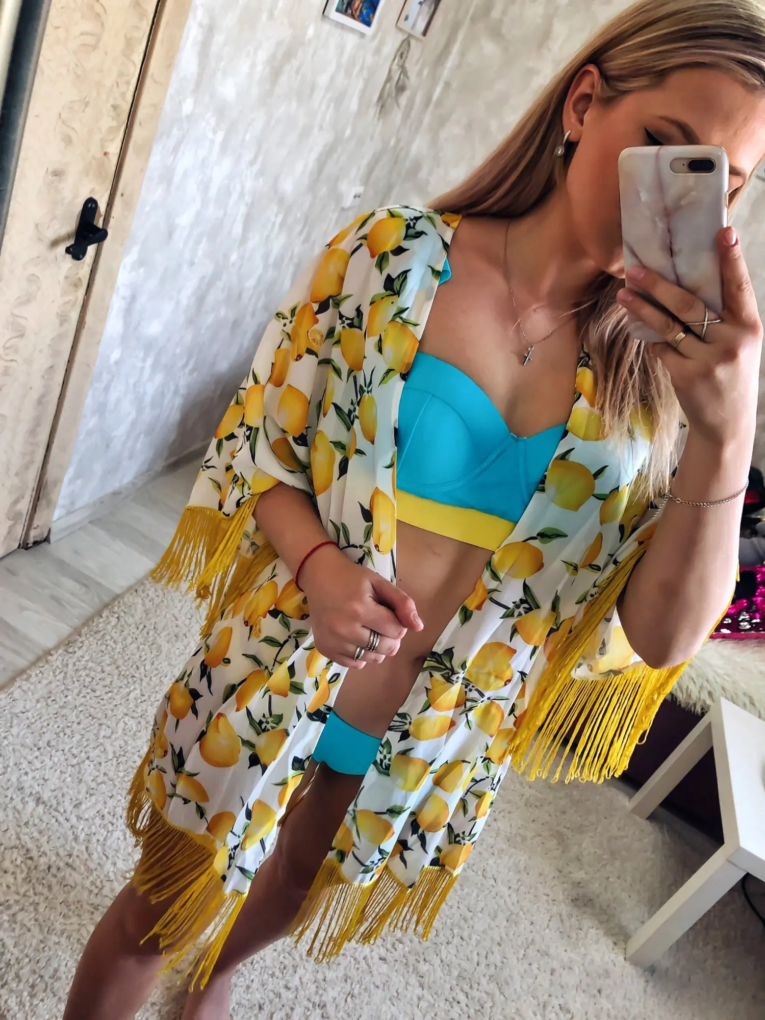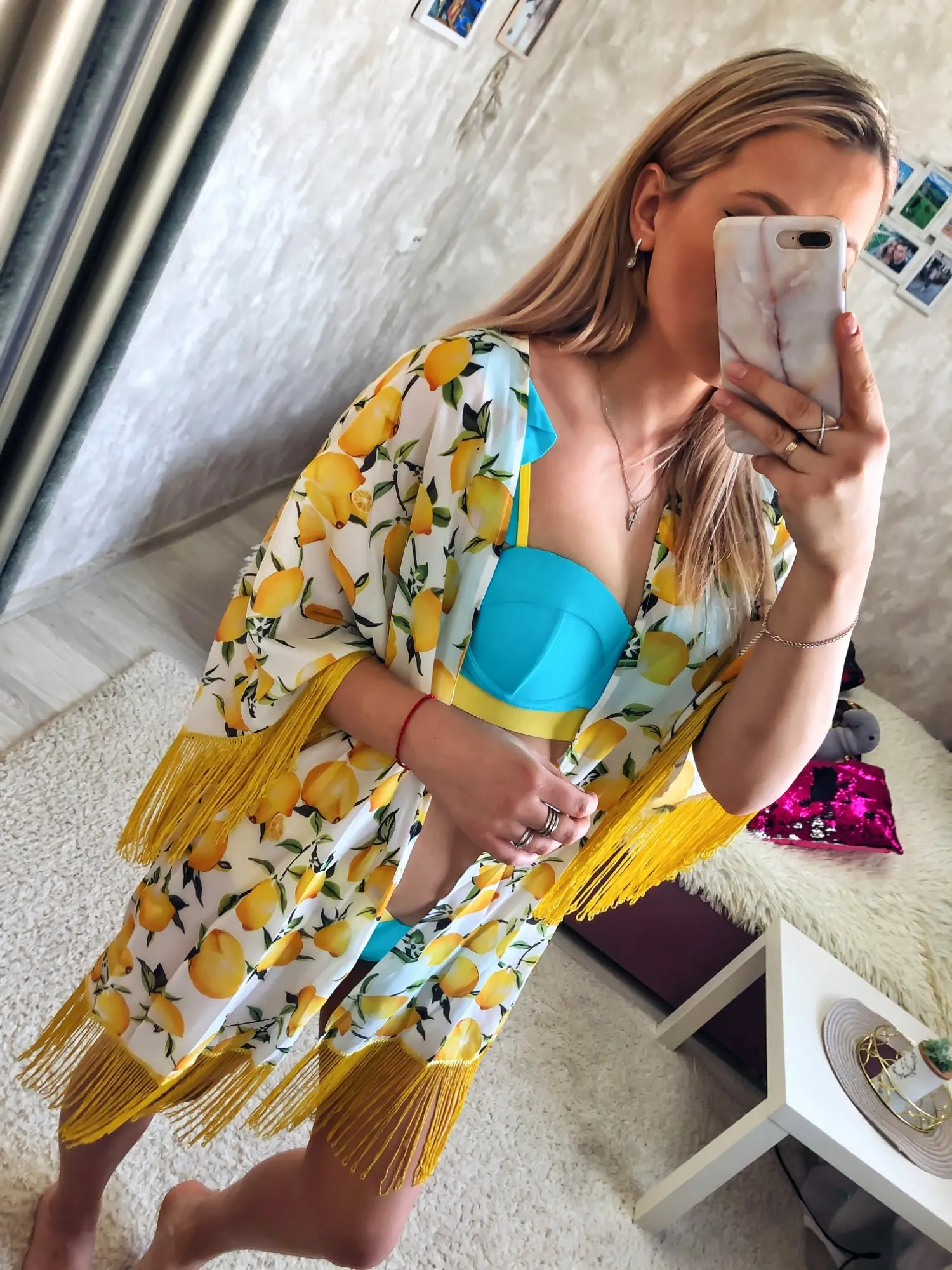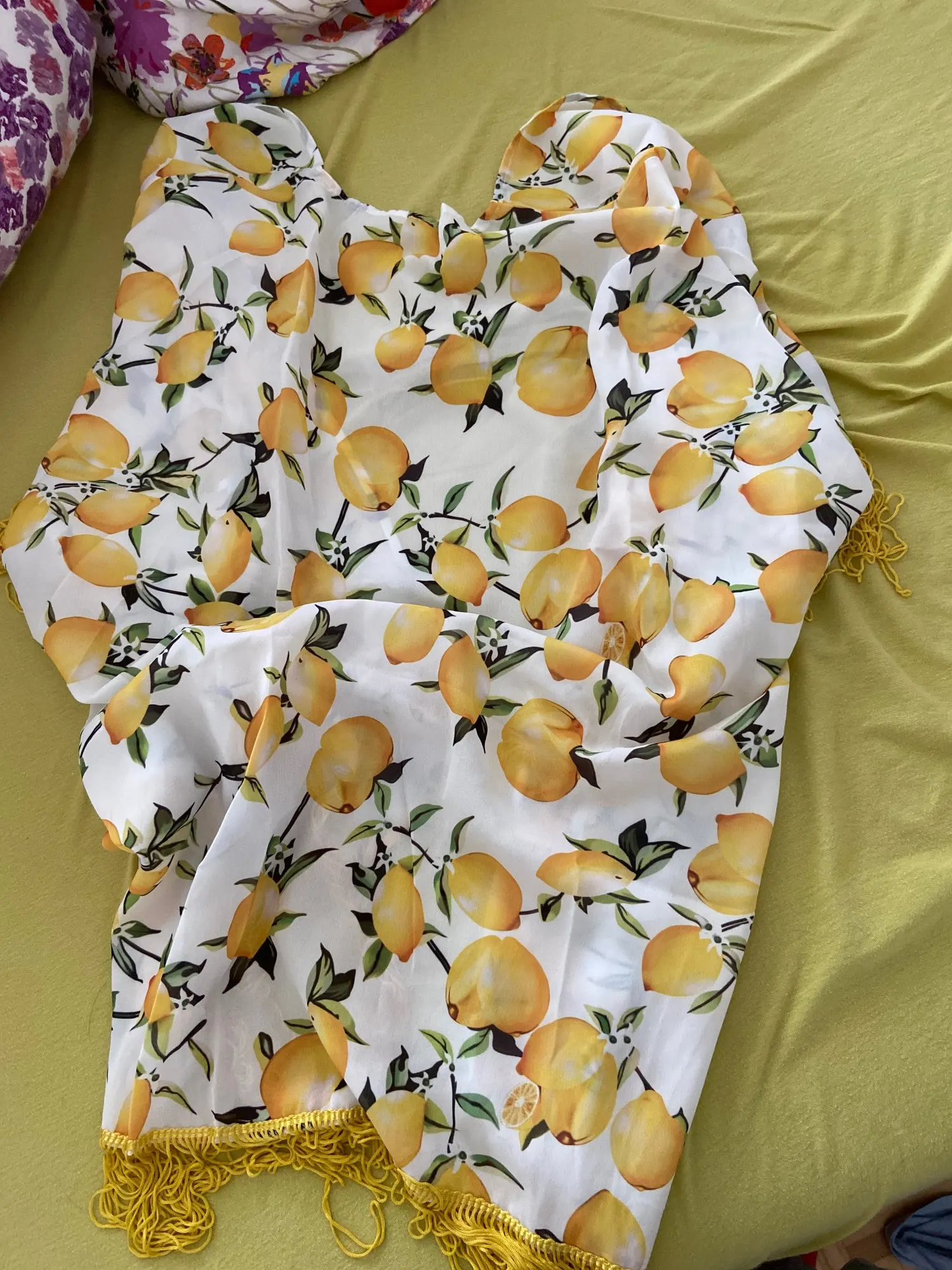 Vestido corto de Chifón con estampado de limones para mujer, traje de baño bohemio con estampado de limones y flecos para playa y piscina, 2022