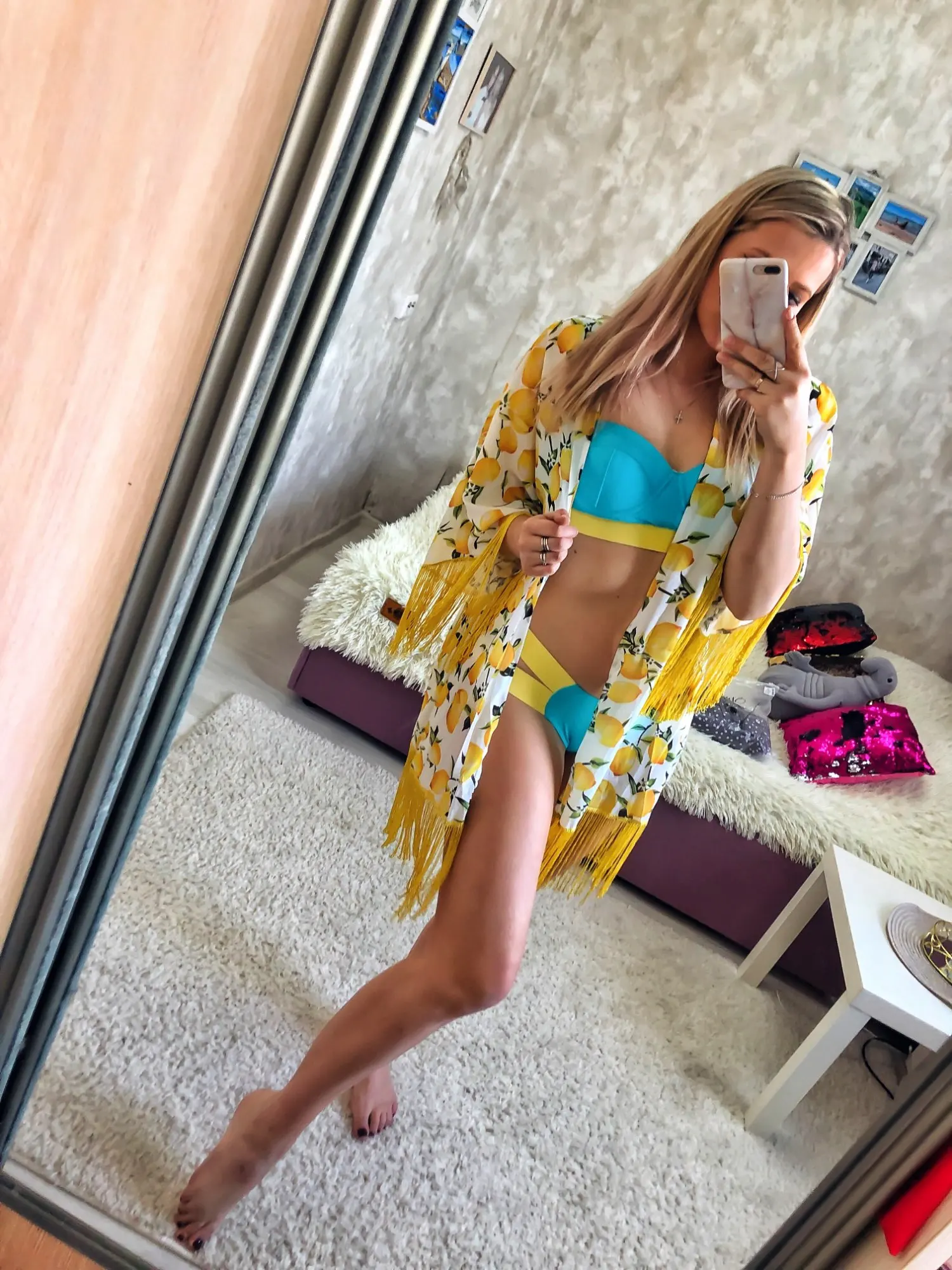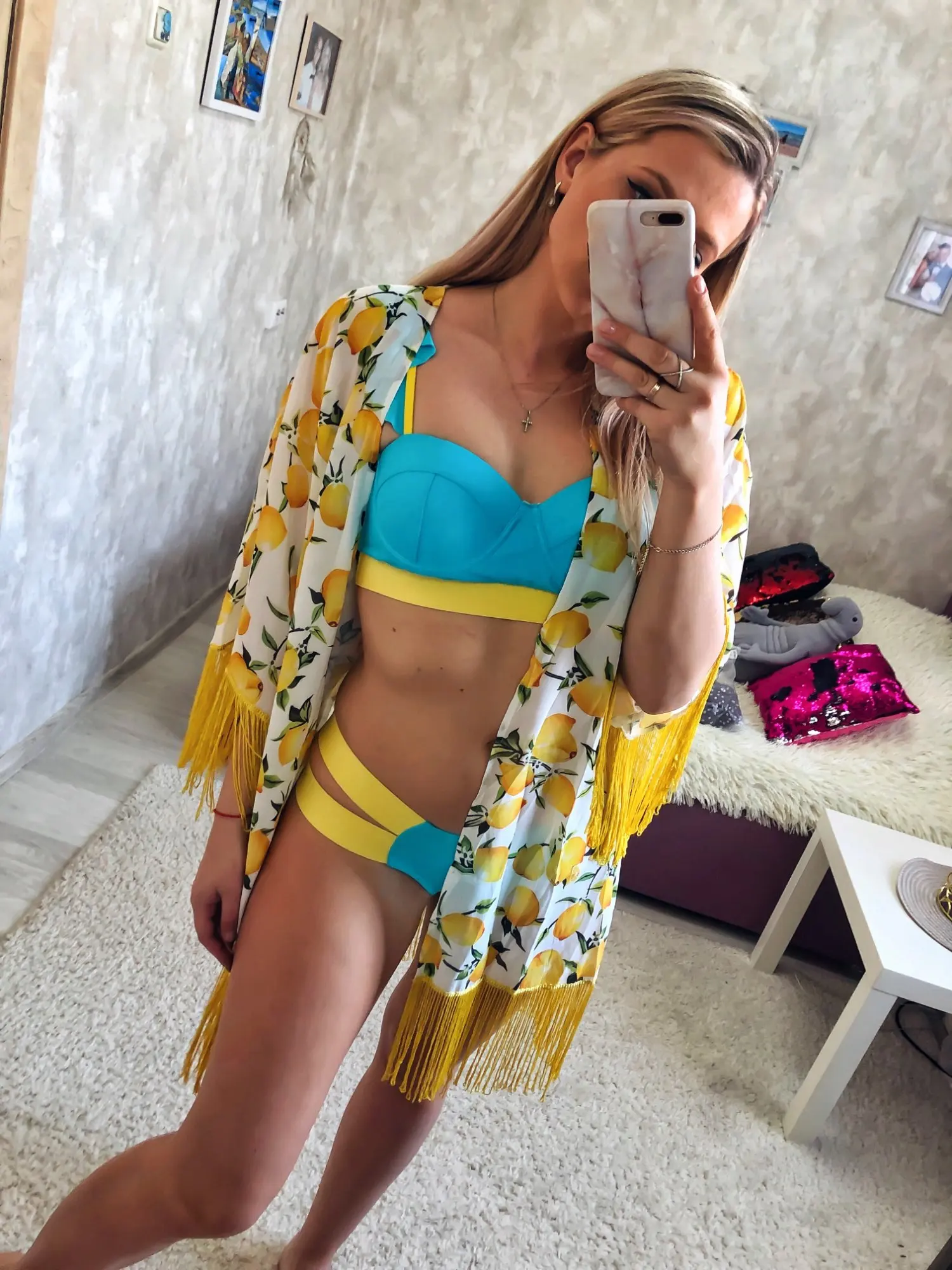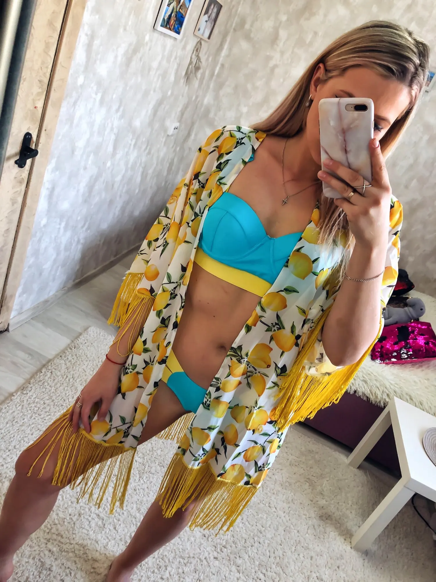 Vestido corto de Chifón con estampado de limones para mujer, traje de baño bohemio con estampado de limones y flecos para playa y piscina, 2022