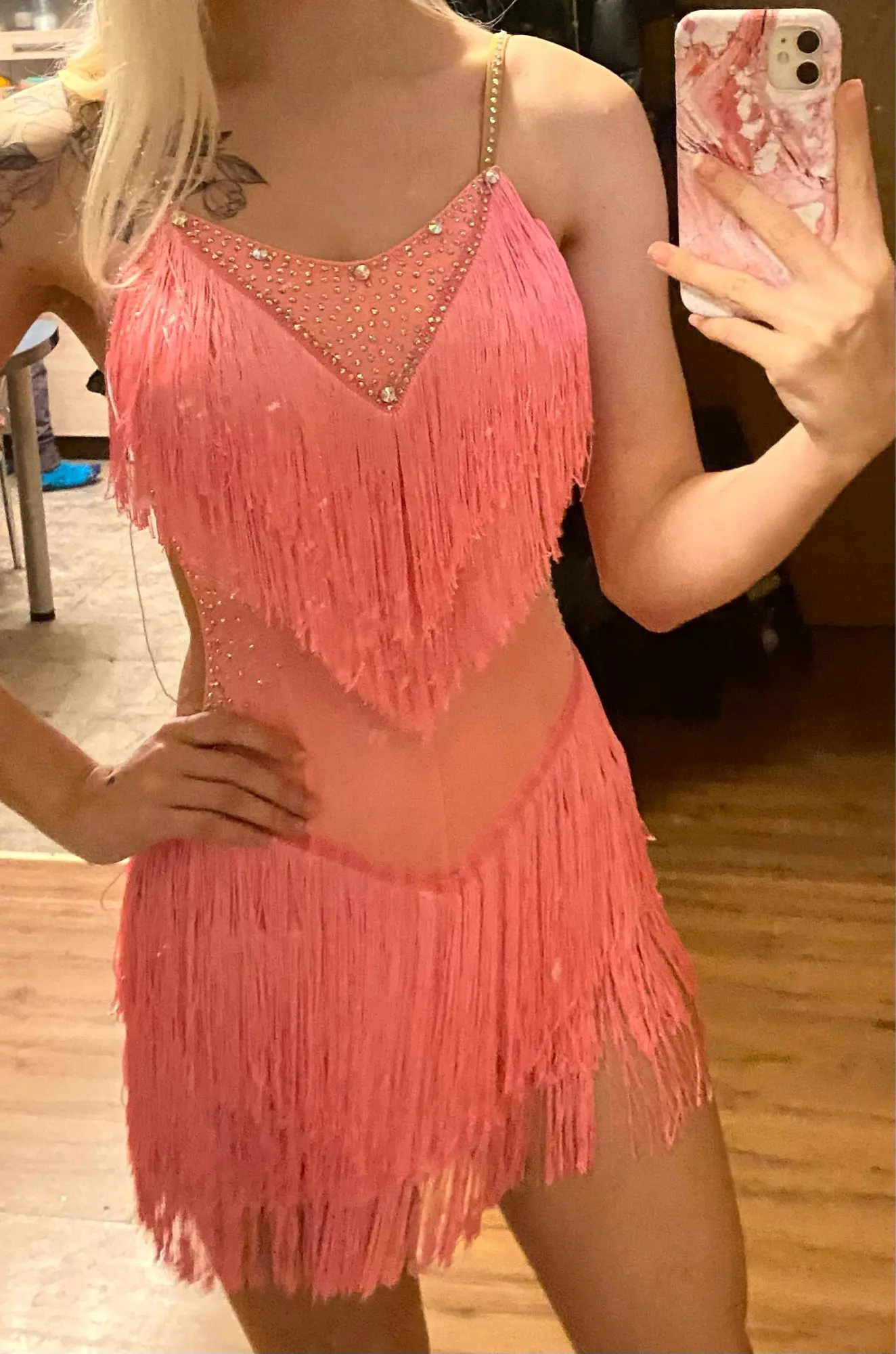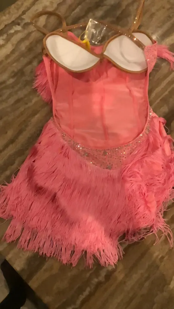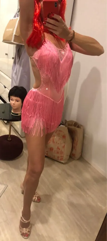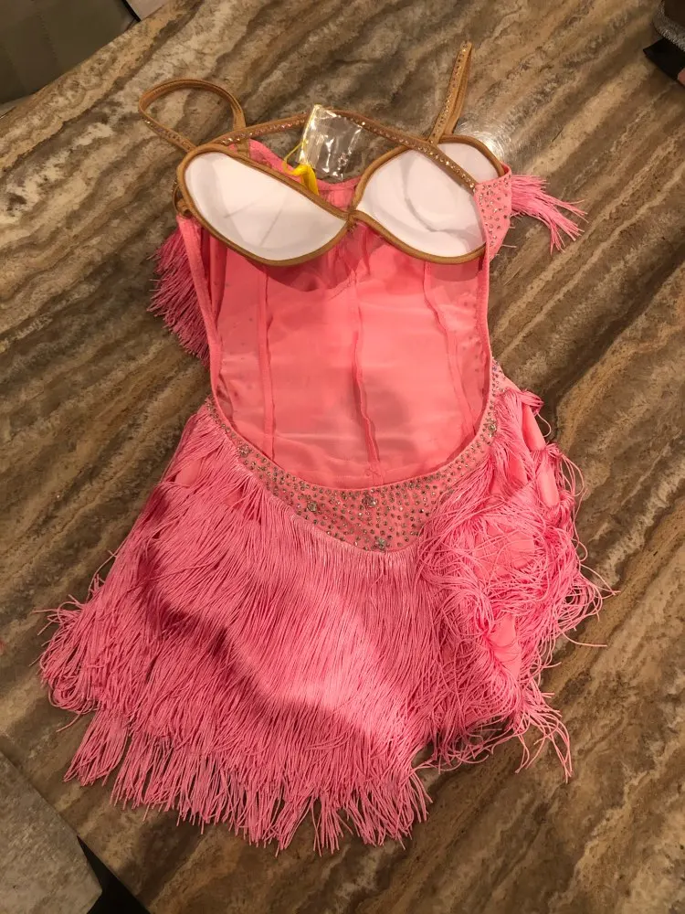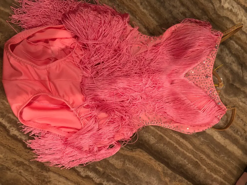 Vestido de baile latino rosa para mujer, fiesta, bailarín, cantante, con flecos