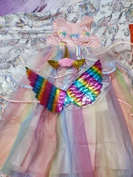 Vestido de fiesta de flores para niña, arco iris de unicornio, vestido de fiesta de boda para niña bebé de 3 a 14 años, conjunto de actuación de baile colorido