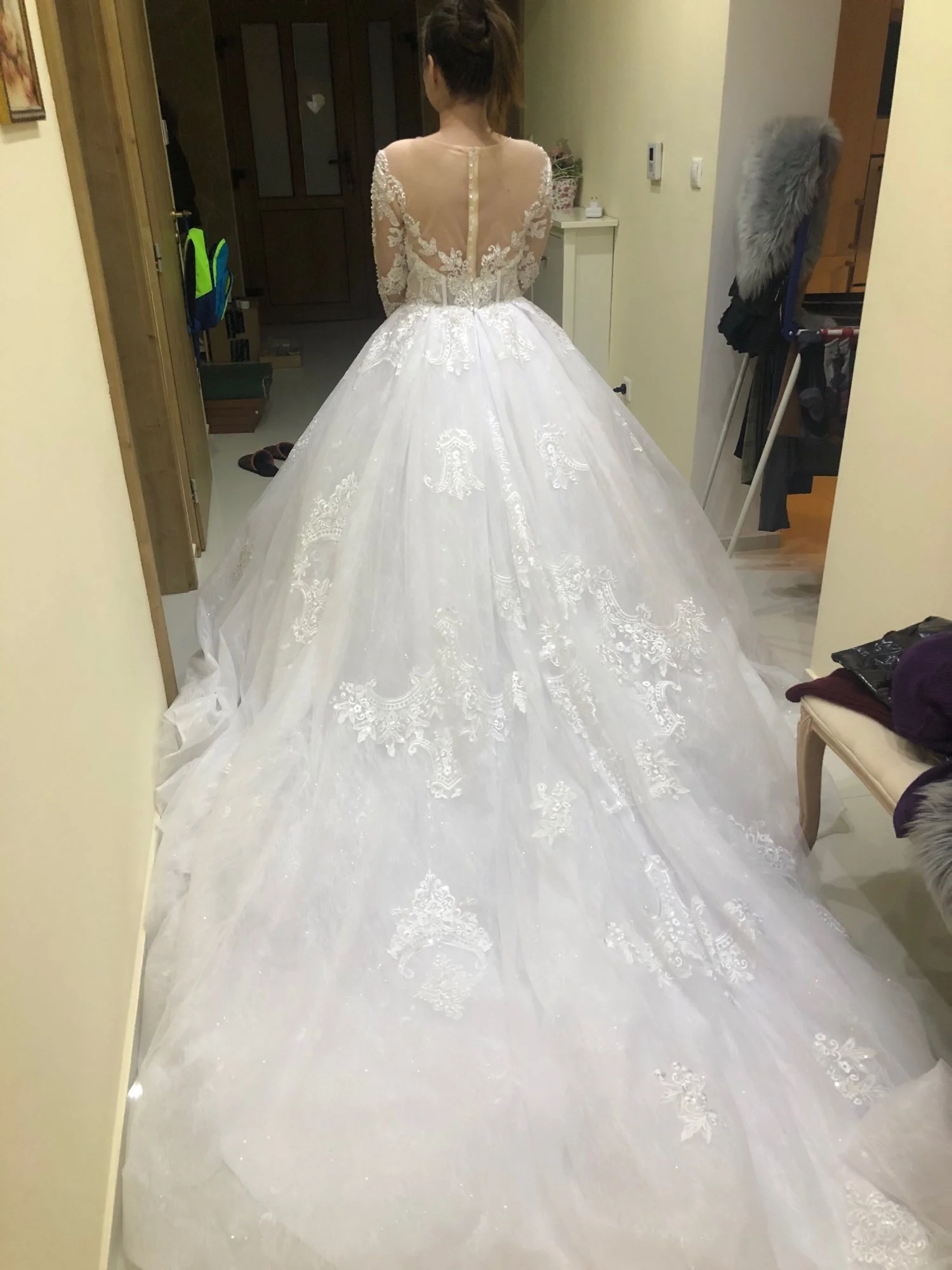El vestido es ESPECTACULAR es igual a las fotos de muestra, yo pague 40 usd extra por cambiar el color de mi vestido a un tono perla/ivory, lo hicieron justo a mi medida y las telas son de primera calidad, es una maravilla por el precio, el día de mi boda me hizo muy feliz y fue la mejor compra que pude haber hecho! Me casé en el bosque y fue la mejor elección de modelo de vestido! Gracias a todo el equipo y al vendedor! Creí que no llegaría a tiempo para mi boda pero llego sin percance y días antes tal y como lo mencionó el vendedor, tardo aprox 2 meses en llegar desde que el vendedor acepto mi orden de compra. Por un momento la barrera del idioma entre el vendedor y yo, me hizo dudar de lo acordado, pero siempre trató de ser amable y responder lo más pronto posible mi vendedor. Deben comprar este vestido es simplemente ÚNICO Y ESPECTACULAR, mis invitados quedaron encantados con verme entrando al altar con un vestido increíble !