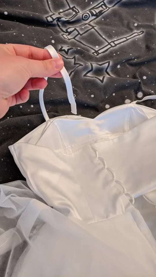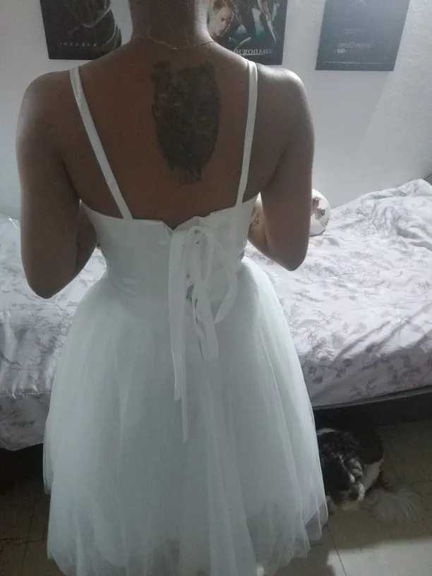 chicas es igual a la foto!!! me encanto!!! pedí la talla 34 solo habrá que apretarlo un poco más pero es tal cual... la falda muchas capas !!! hermoso !! atrás viene con cierre y amarras. subiré fotos