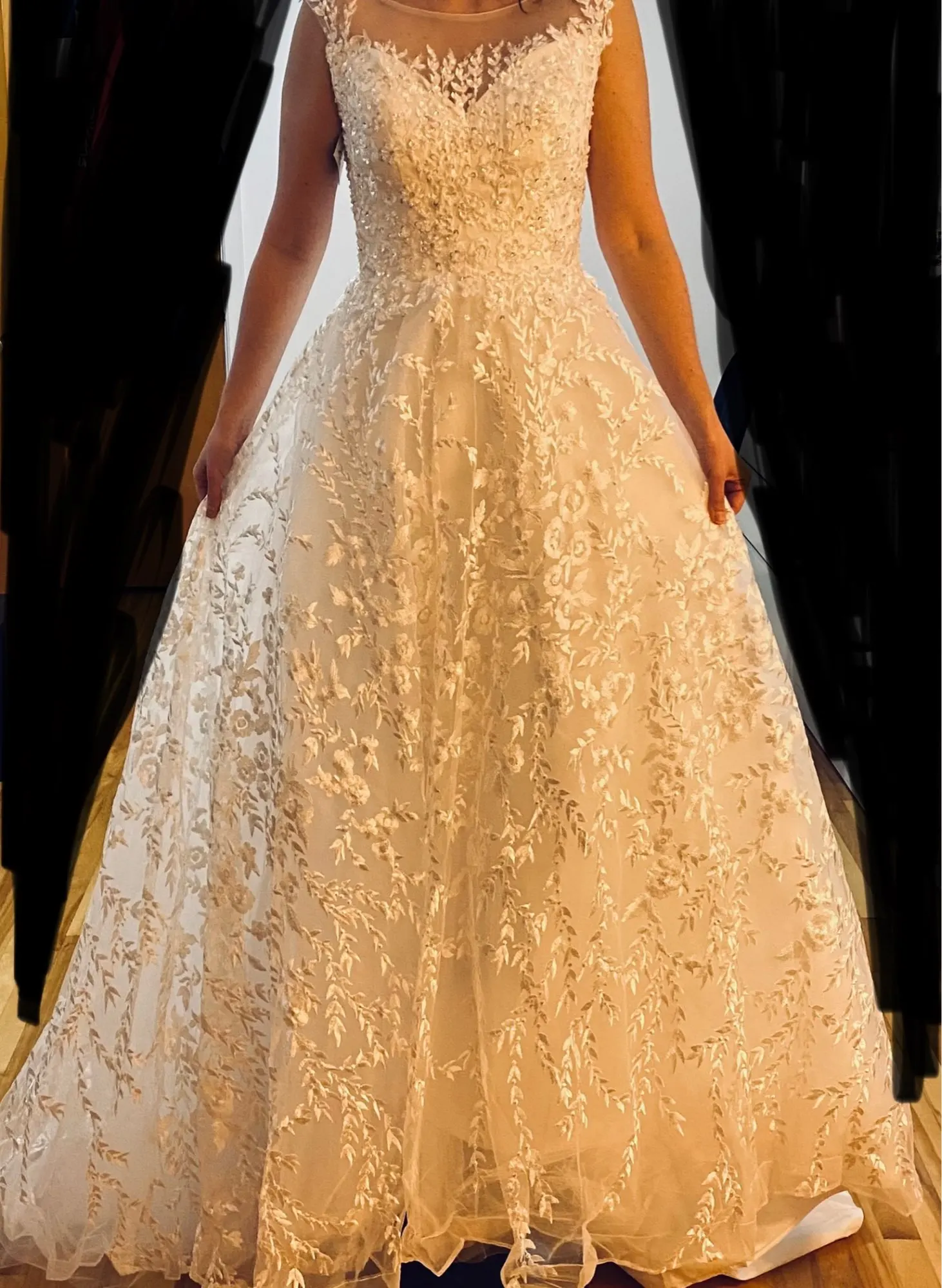 el vestido es precioso, necesita algunos pequeñitos ajustes pero es es justo como la imagen