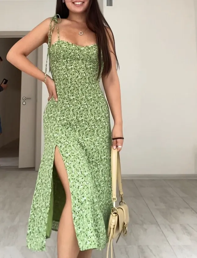Vestido de Verano de 2022 mujeres impresión Floral verde cabestrillo vestido de verano Mujer Cuello V sin mangas bajo ranuras de Chiffon vestido