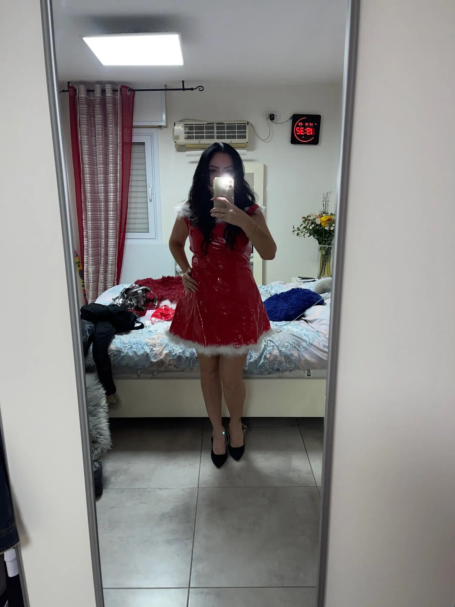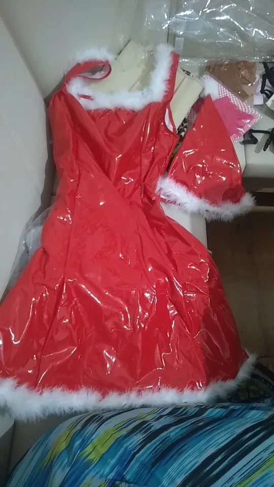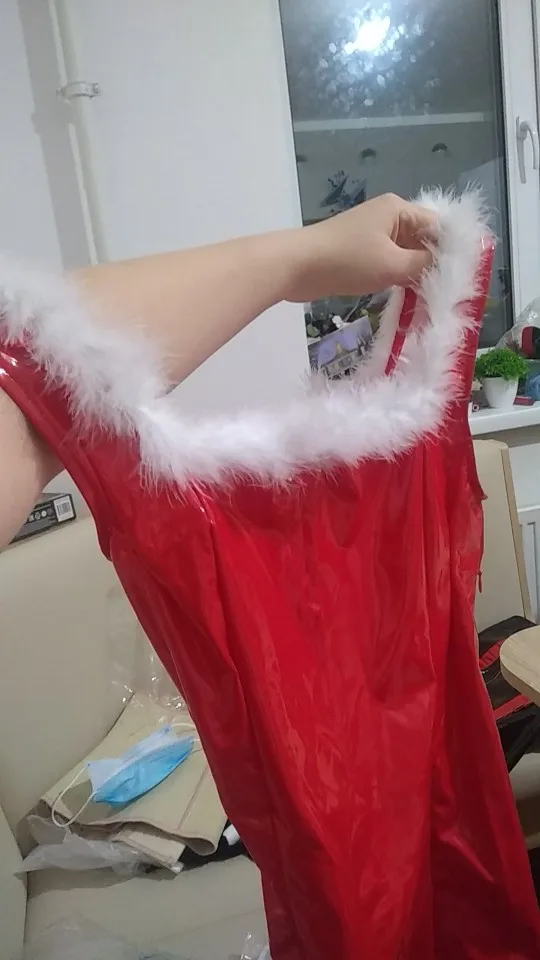 Vestido elegante de látex sin mangas para mujer, disfraz navideño de Sra Papá Noel, ropa para discoteca, corte en A, con sombrero