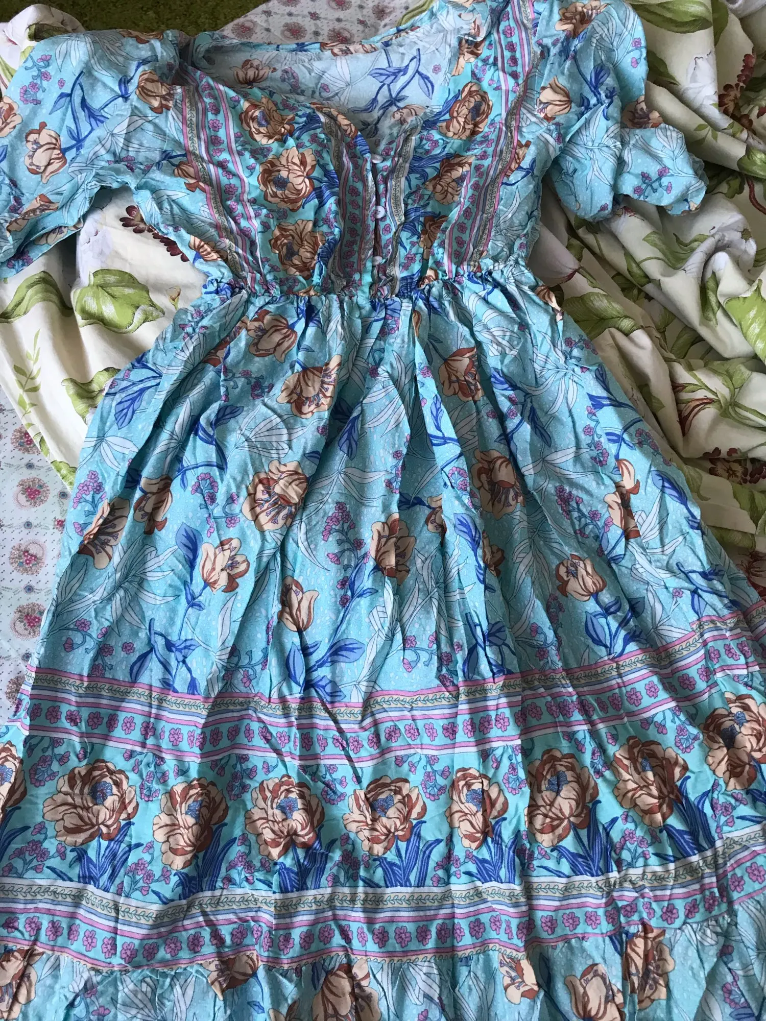 Vestido Floral bohemio para mujer, vestido informal con escote en V y Media manga de cintura alta, vestido estampado de moda para verano 2022