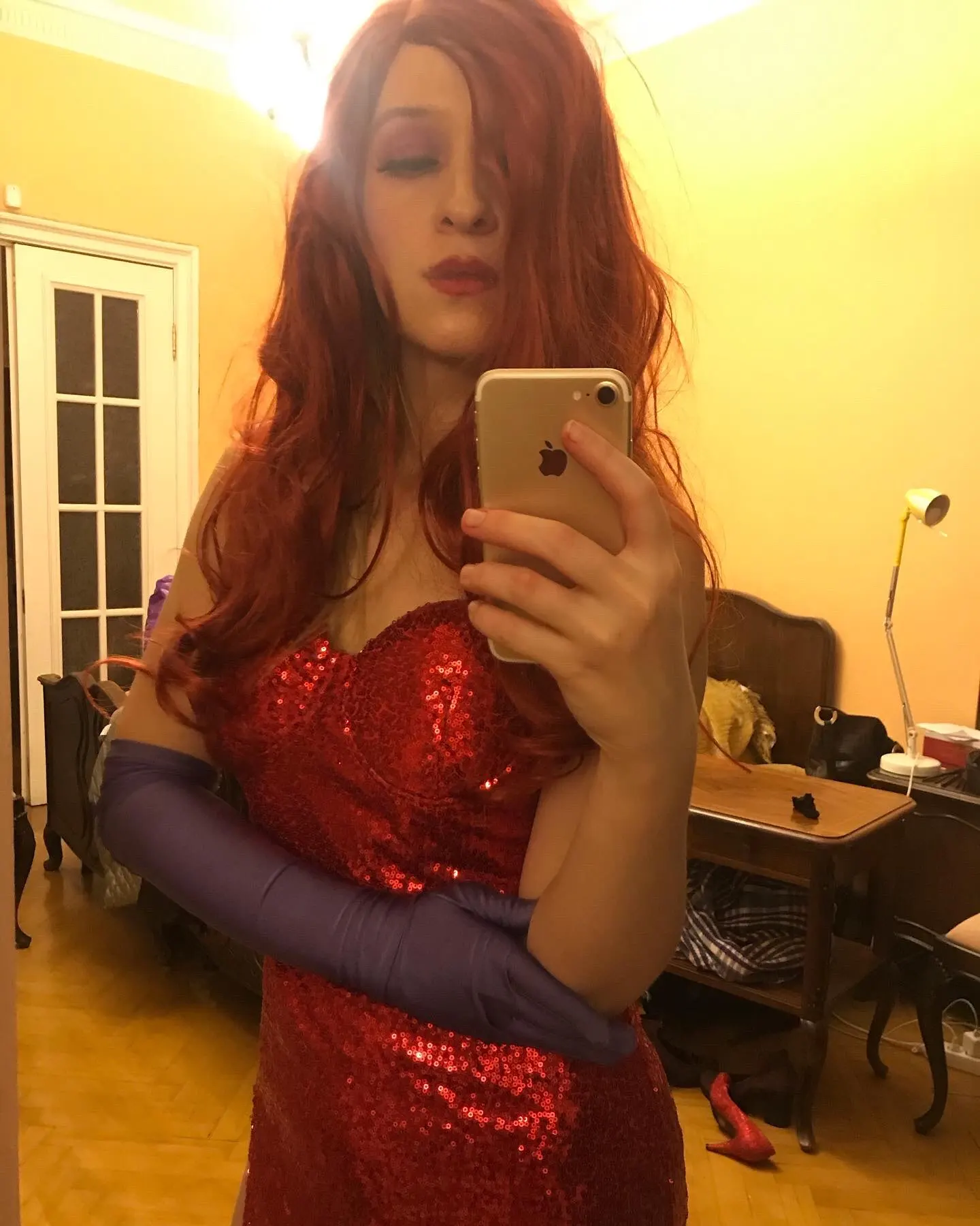 Vestido Rojo de conejo Jessica, disfraz de Cosplay