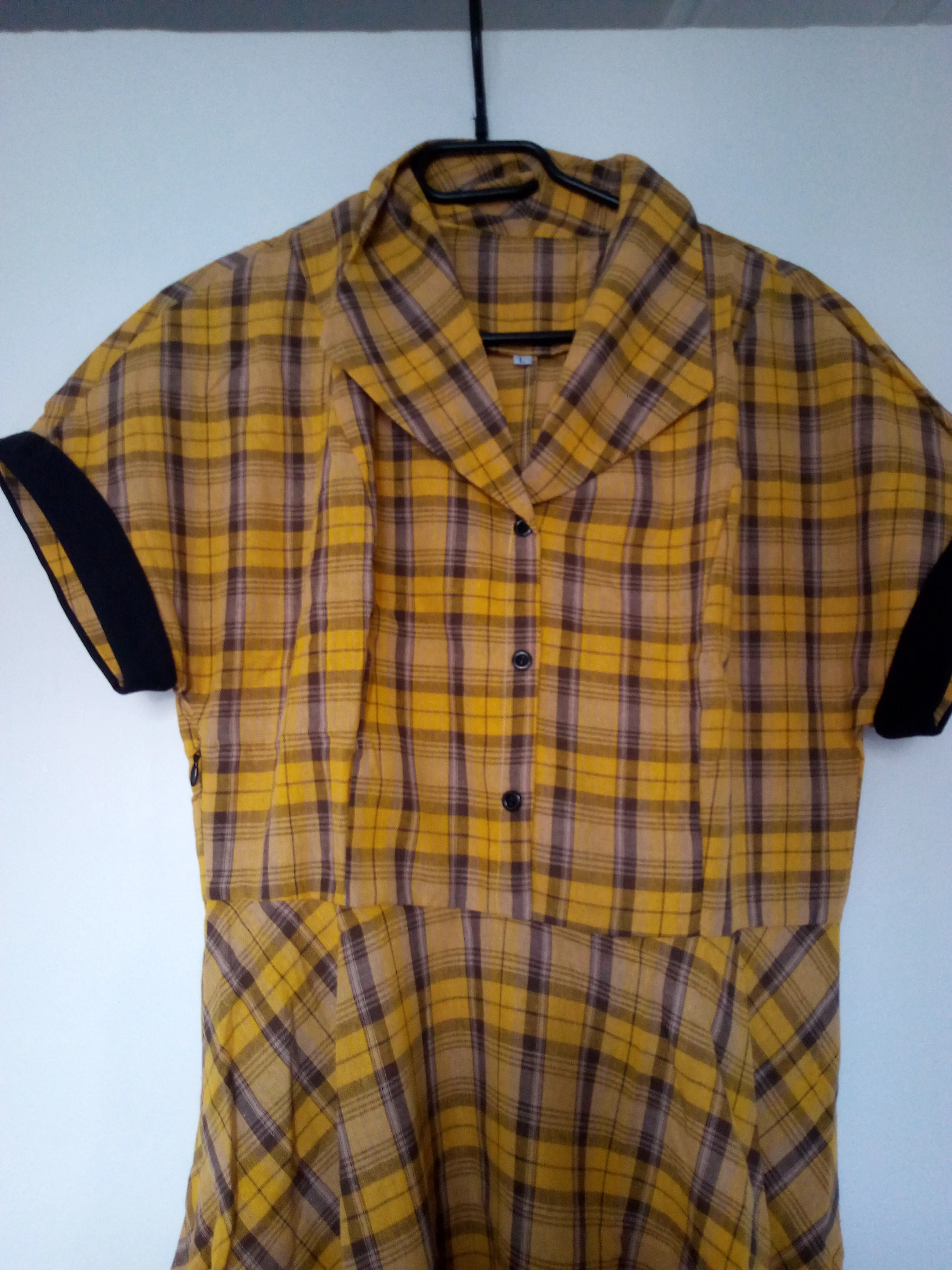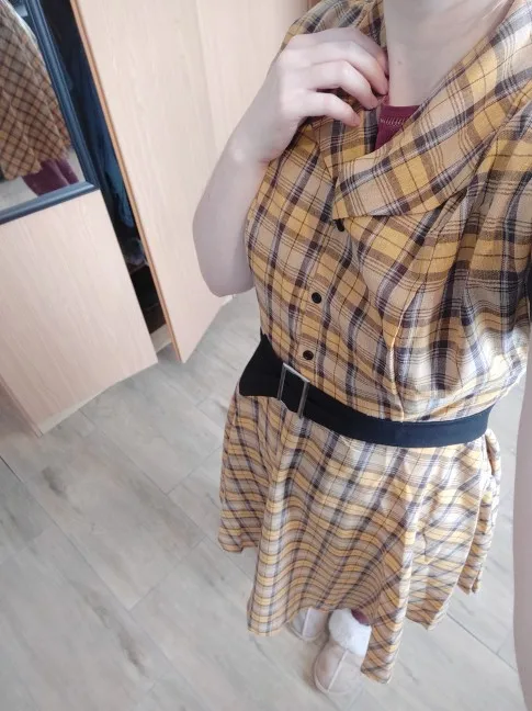 La tela es muy finita, pero aun así tiene muy buena pinta, si tienes el pecho grande cabe perfectamente. Vestido muy otoñal y un toque pinup fantástico.