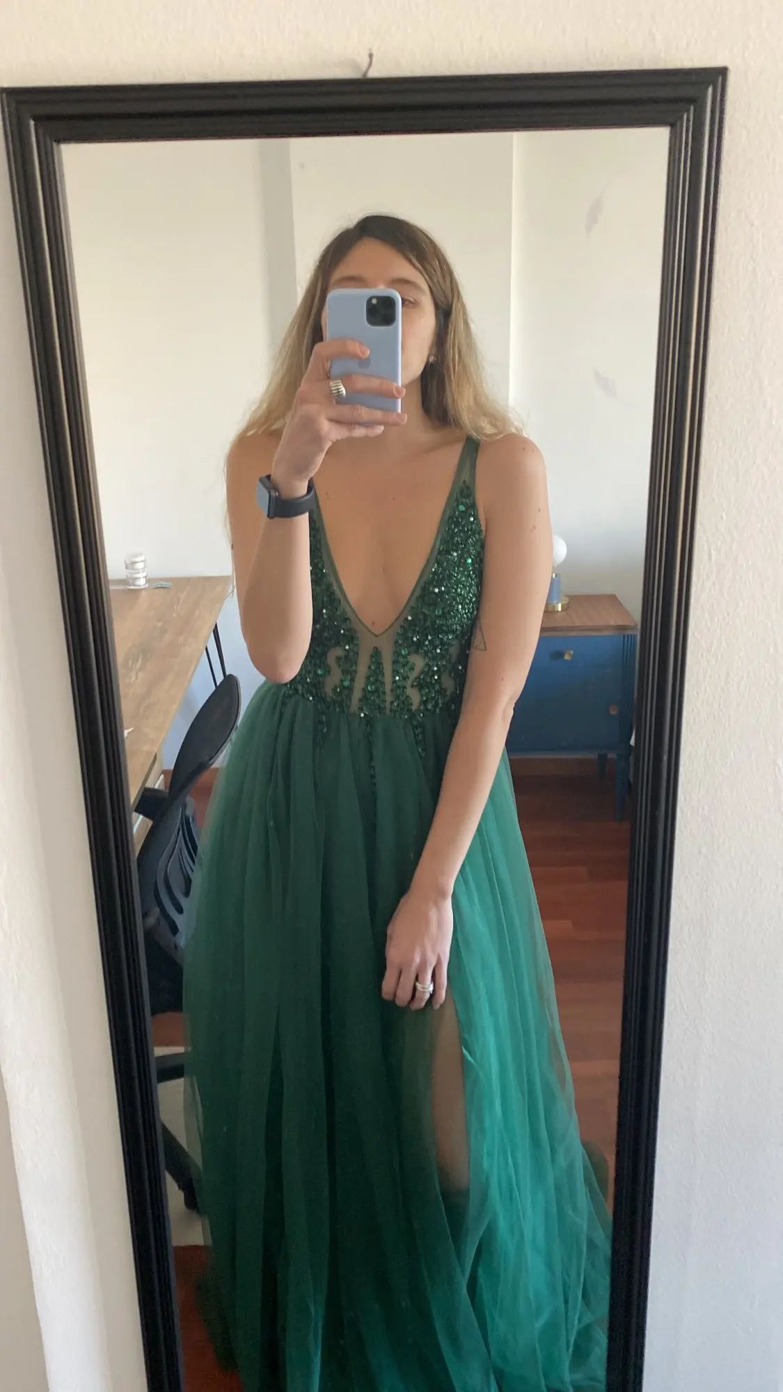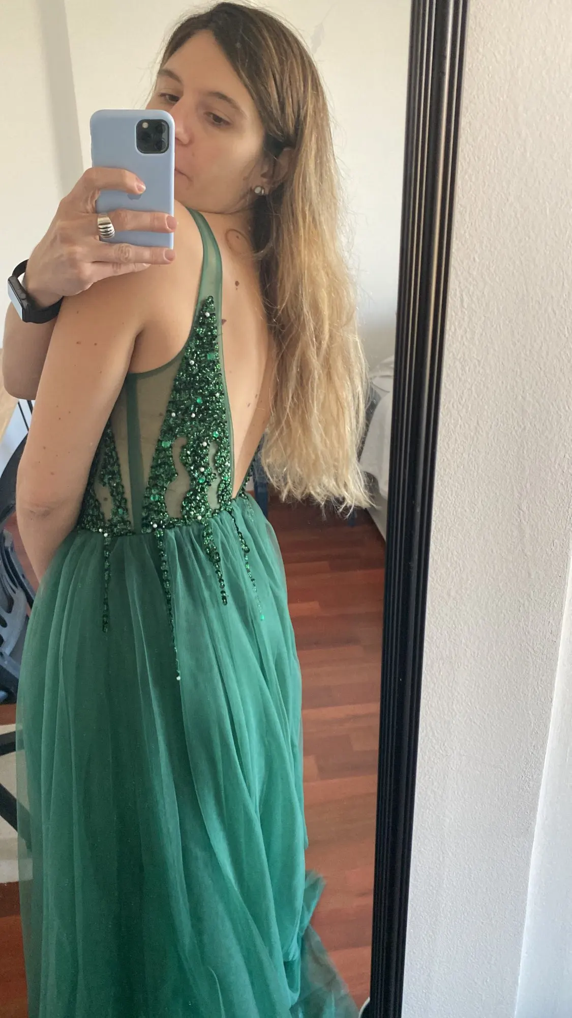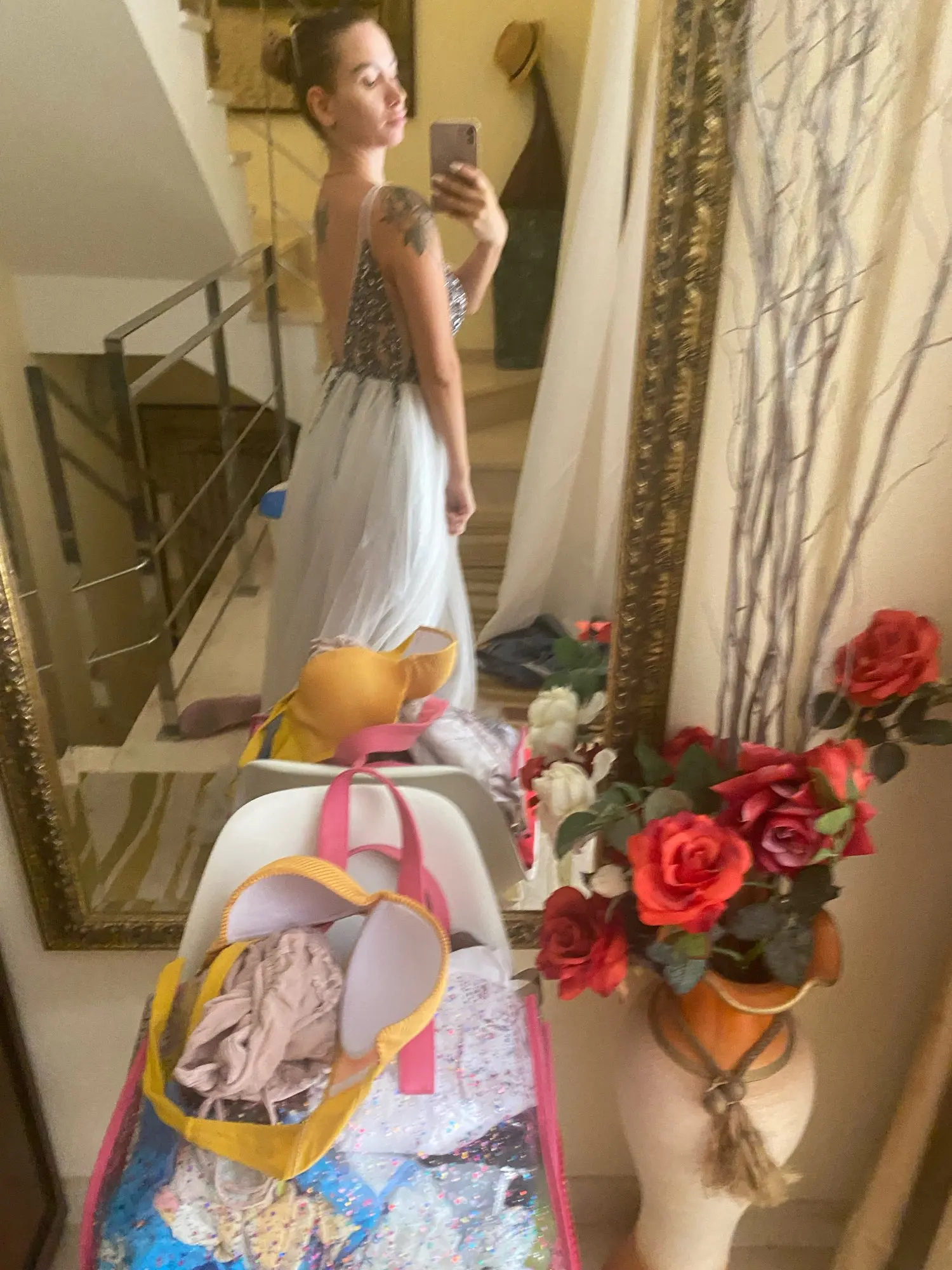 Vestidos De graduación con cuentas largo 2022 cuello en V gris claro alto Split tul Sweep Train sin mangas Vestido De noche Línea A Vestido De espalda descubierta