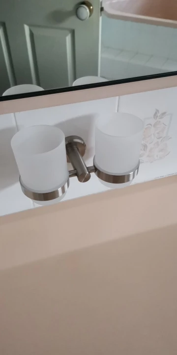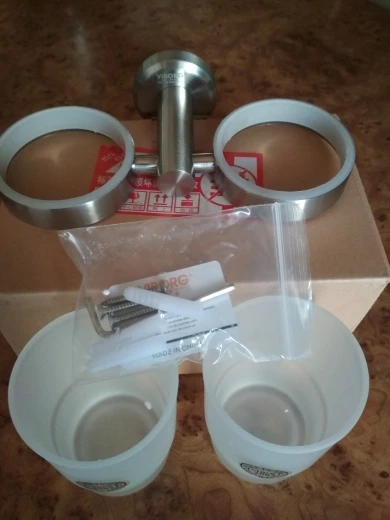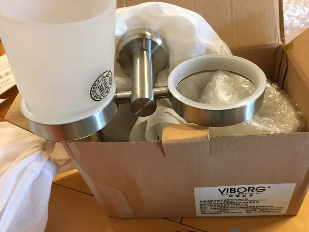 VIBORG Deluxe-Soporte de doble vaso para cepillo de dientes de acero inoxidable 304, montado en la pared, con 2 tazas de cepillo de dientes de vidrio templado, cepillado