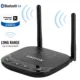 Funciona como se menciona, lo unico malo es que no me ha dado el alcance de los 80 metros, hay lag en aproximadamente 20 metros, no se si se solucione apuntando las antenas en alguna direccion, en cuanto a conectar dos bocinas a la vez, a veces se adelanta una en el sonido pero se soluciona al apretar uno de los botones del aparato, fuera de estos dos detalles cumple con su funcion.