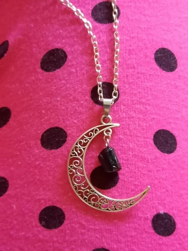 Natural Crystal Hollow Moon Pendant Necklace Black Tourmaline Amethyst