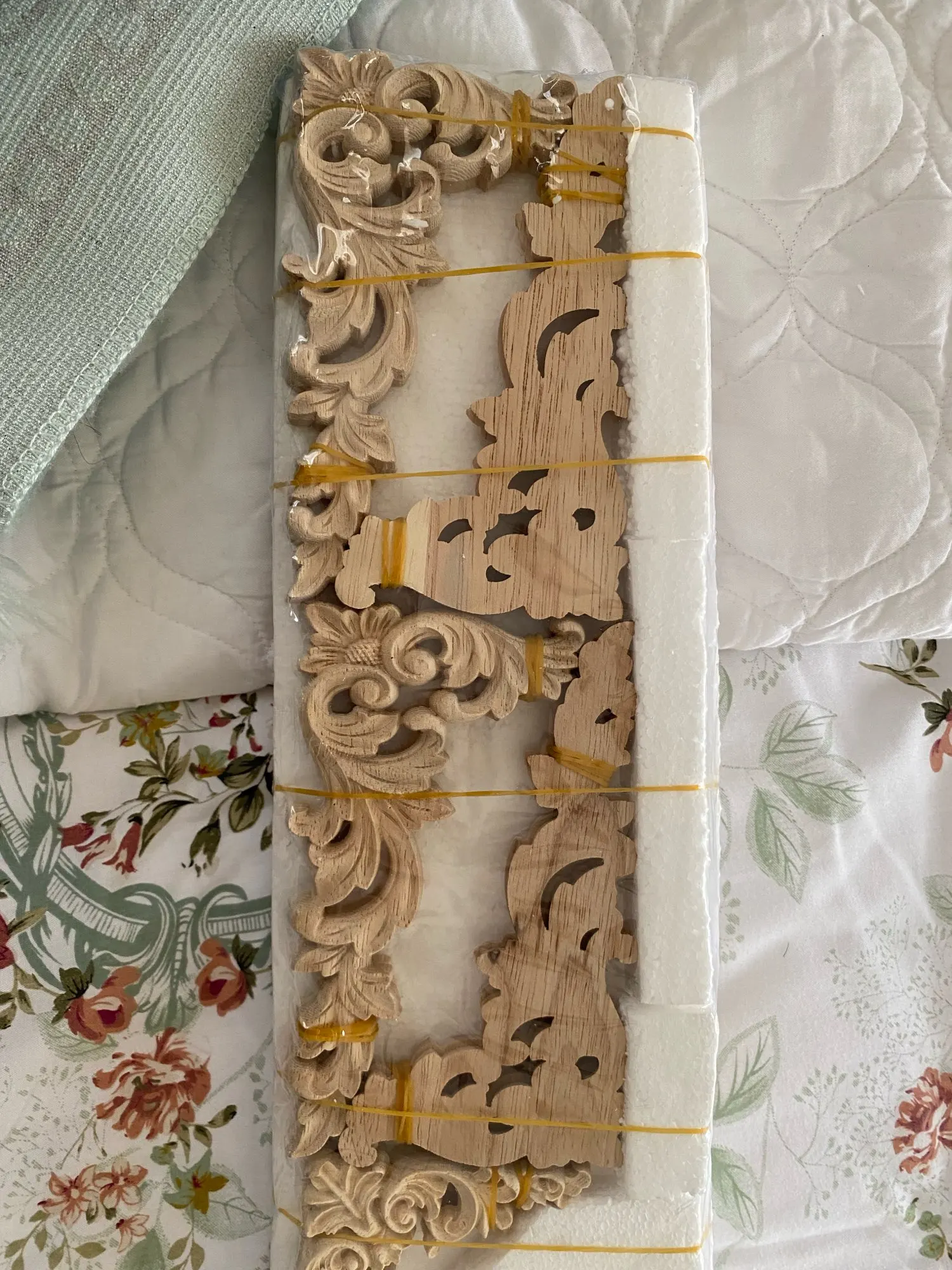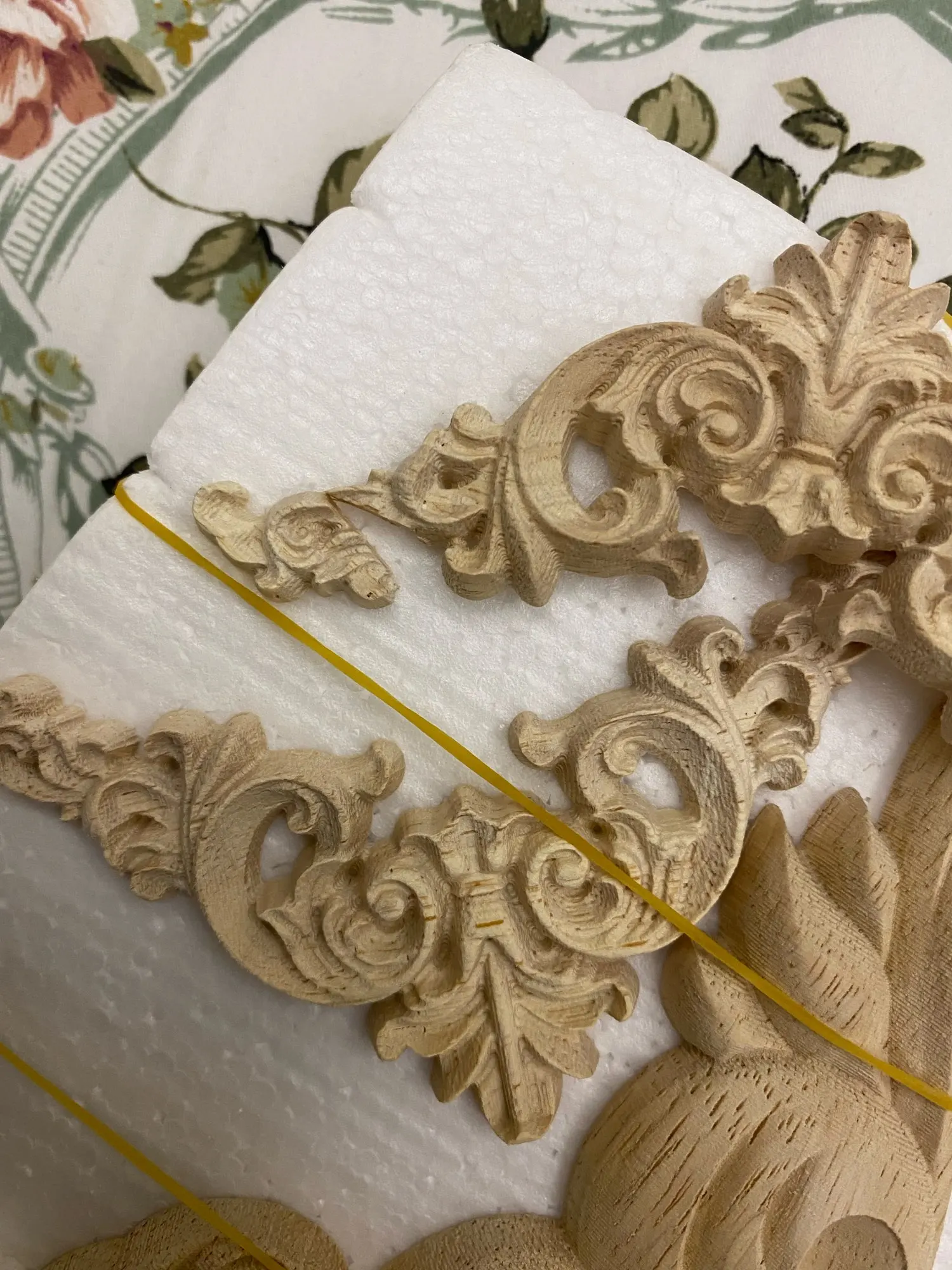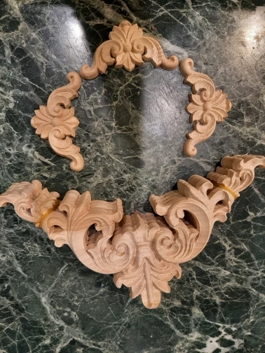 VZLX tallada sin pintar Europea exquisito largo Floral hojas de ventana de muebles de esquina apliques de madera Onlay de madera figuras