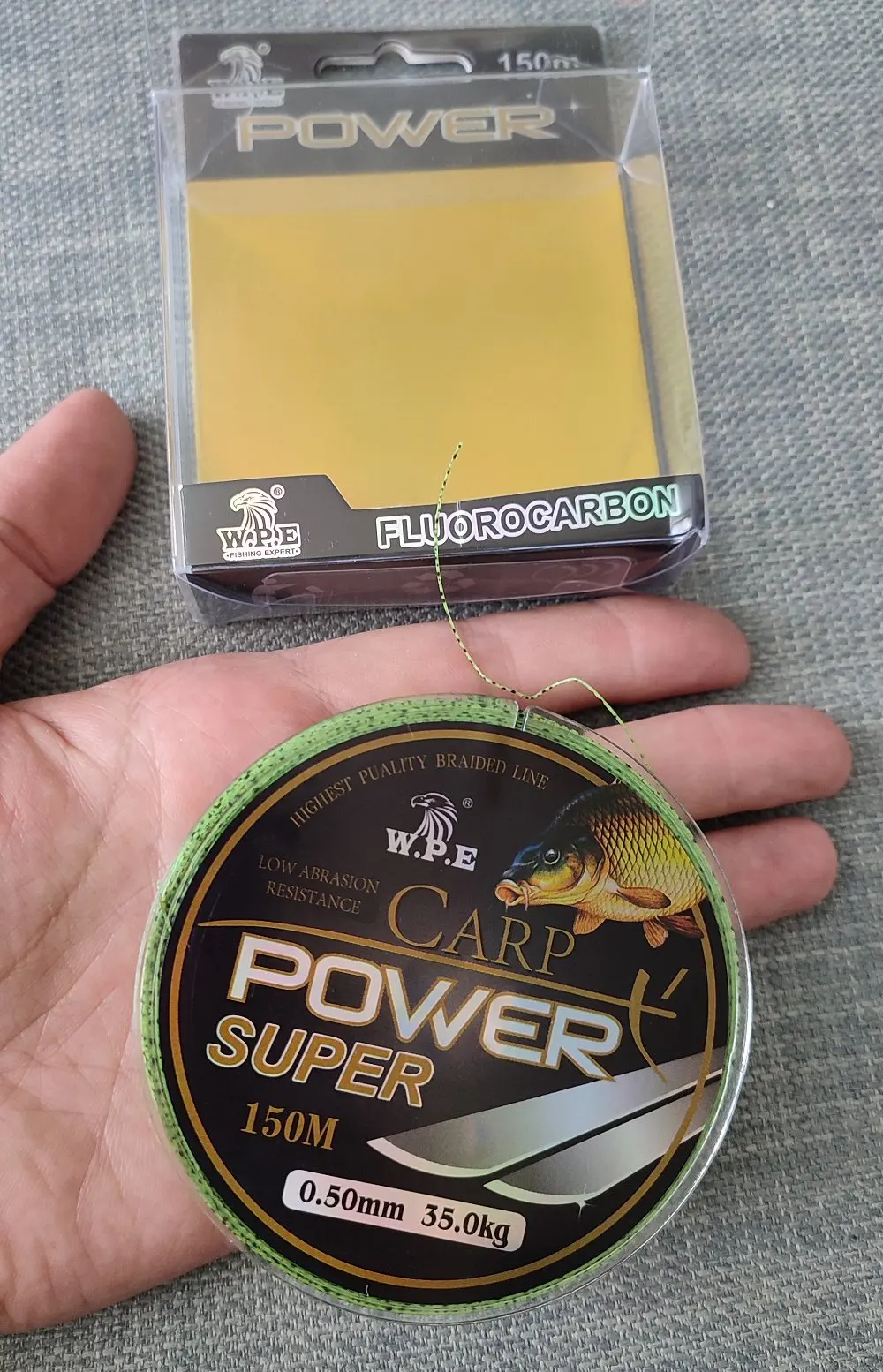 W.P.E-sedal de pesca de carpa superpotente, línea de pesca de recubrimiento de fluorocarbono de 0,2mm-0,60mm, 10-41KG, doble color, hundimiento rápido