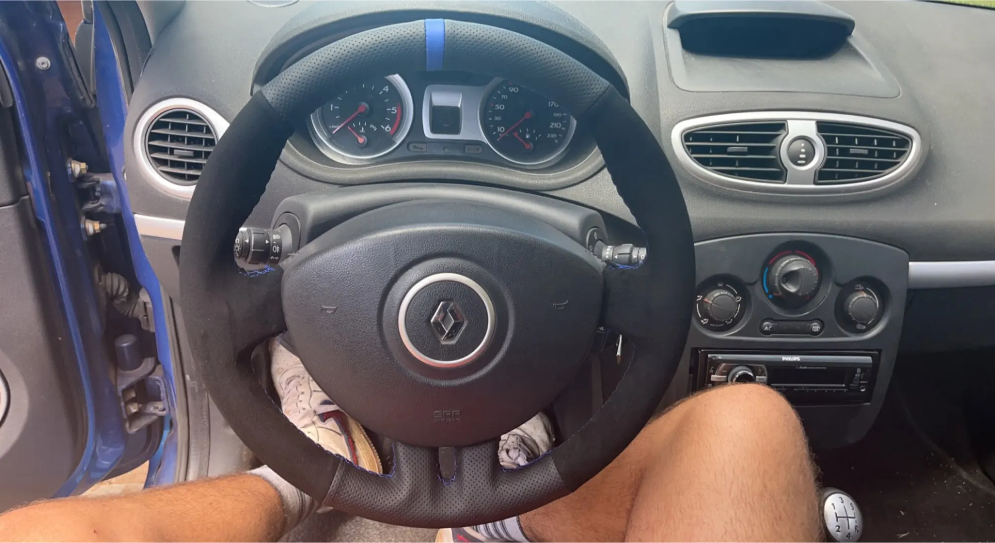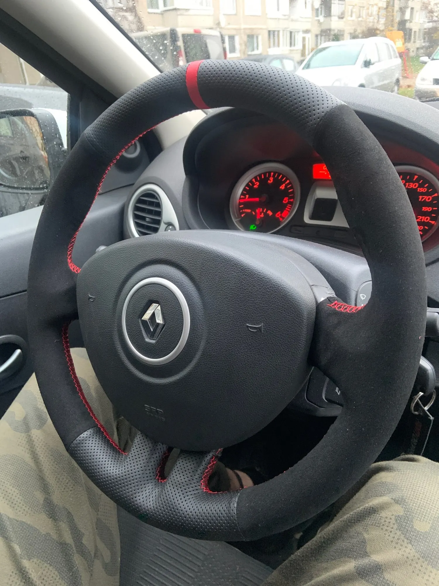 WCaRFun negro de cuero de gamuza negro marcador rojo protector para volante de coche para Renault Clio 3 2005-2013 Clio RS 2005-2013