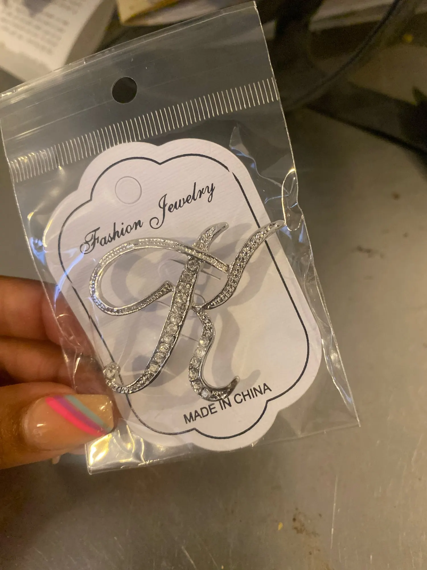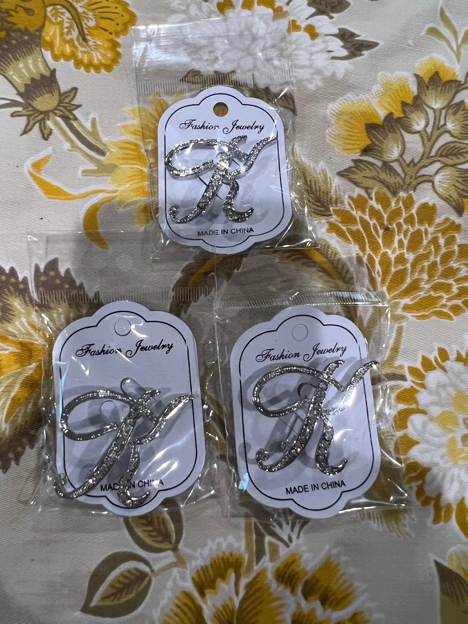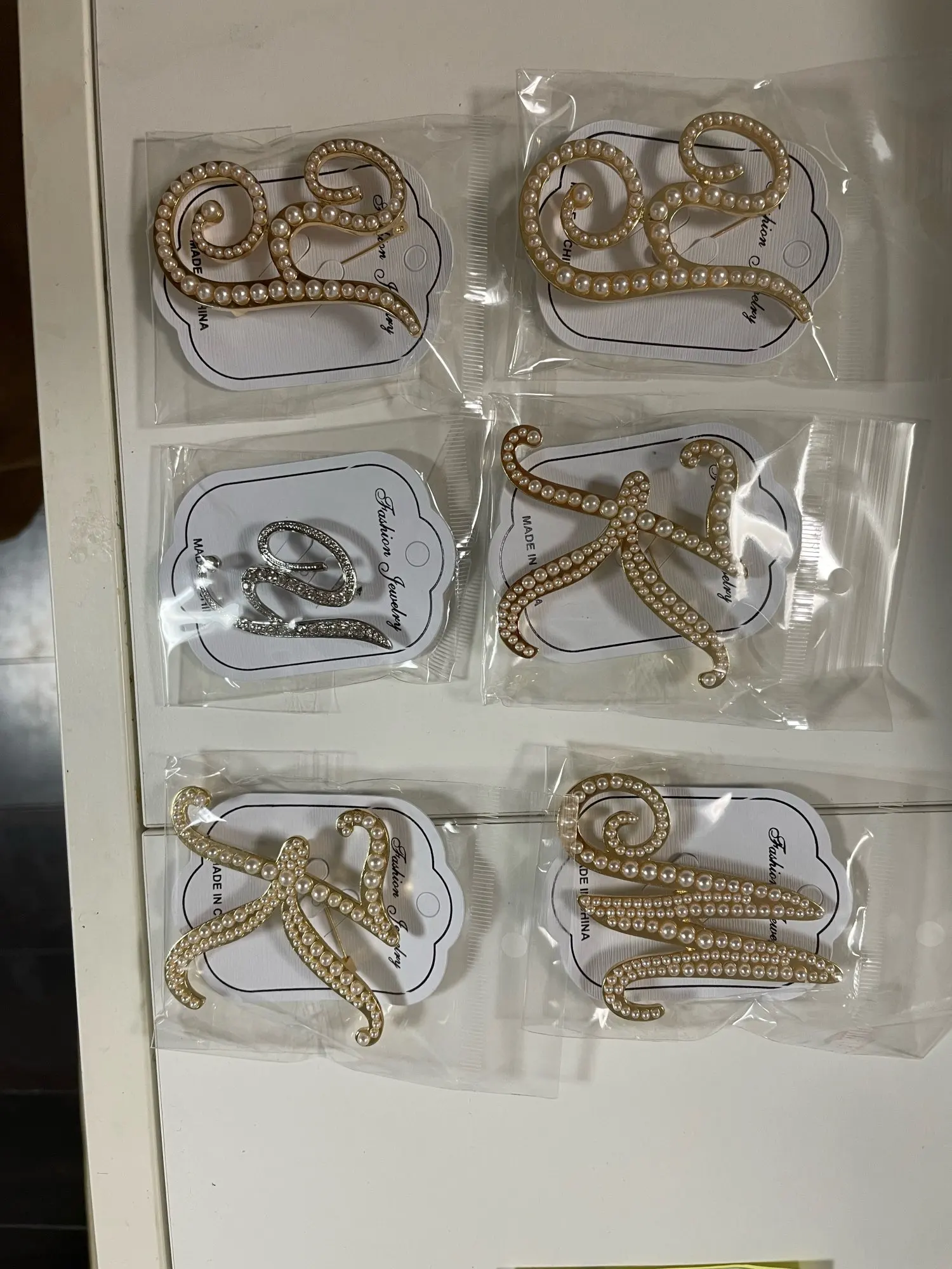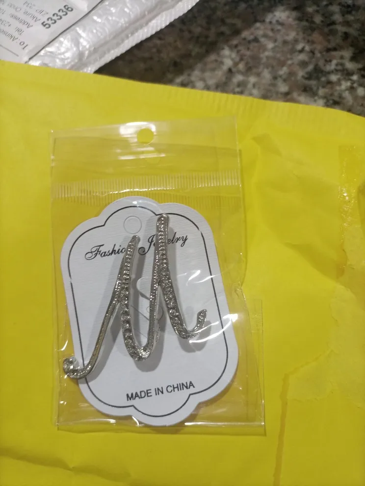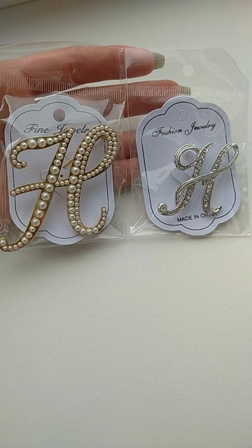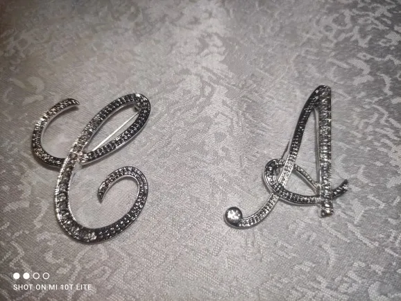 WEIMANJINGDIAN-broche con iniciales para mujer, de aleación de Zinc, cristal transparente, diamantes de imitación, en Color plateado