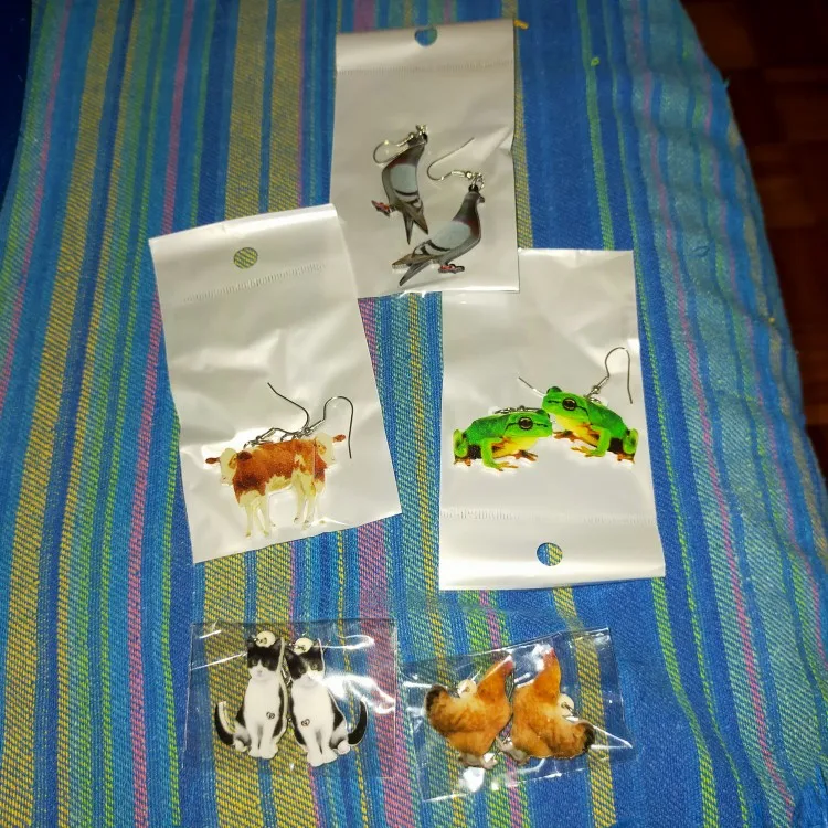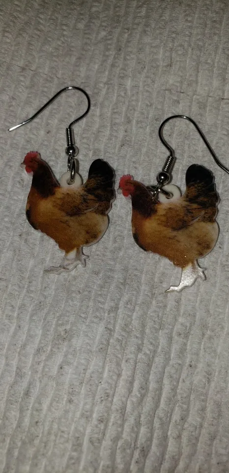 WEVENI, pendientes de gallina acrílicos con motivos florales, colgantes largos y grandes, novedad, joyería de búho de granja para mujeres y niñas, abalorios de animales de dibujos animados
