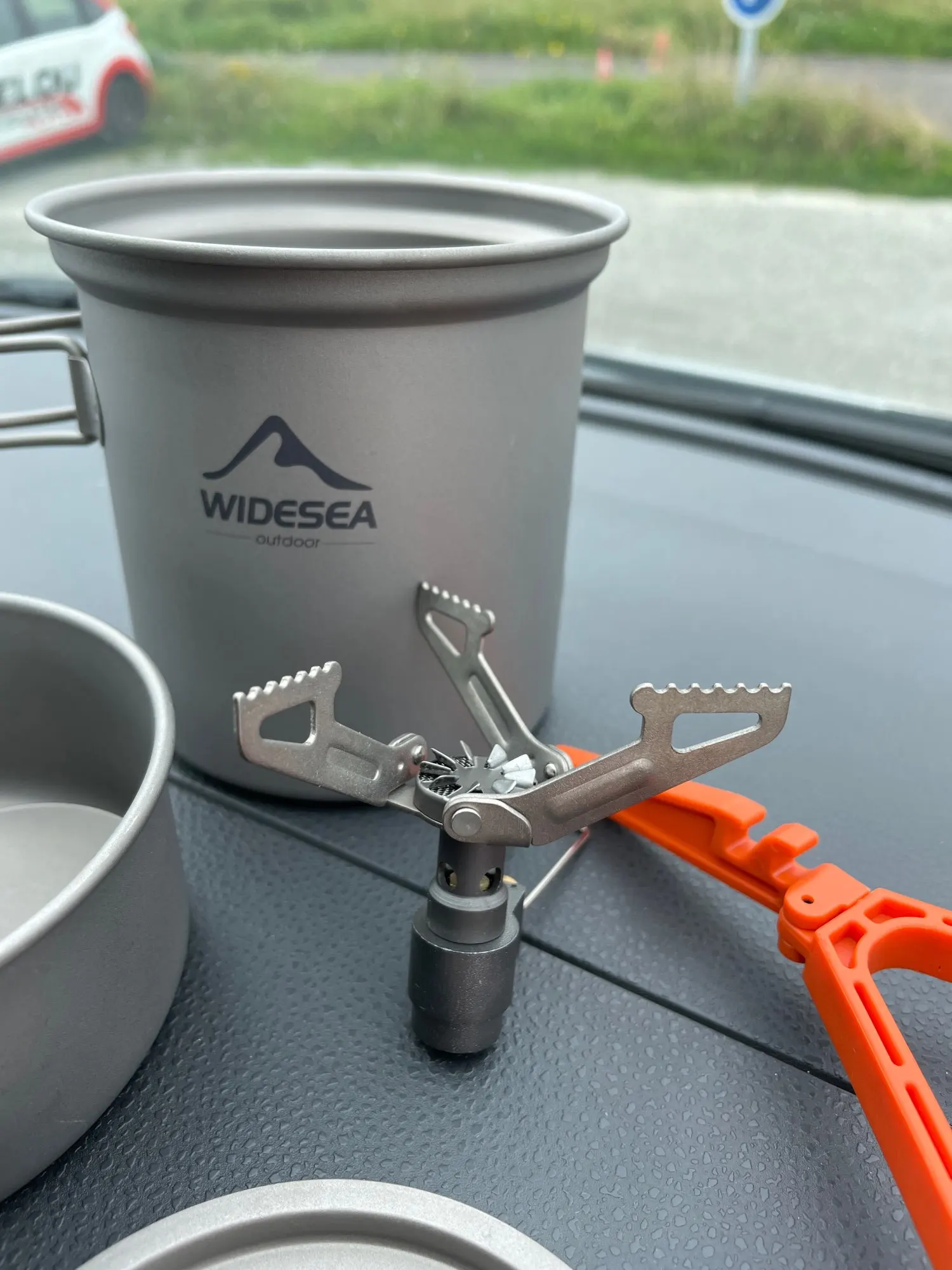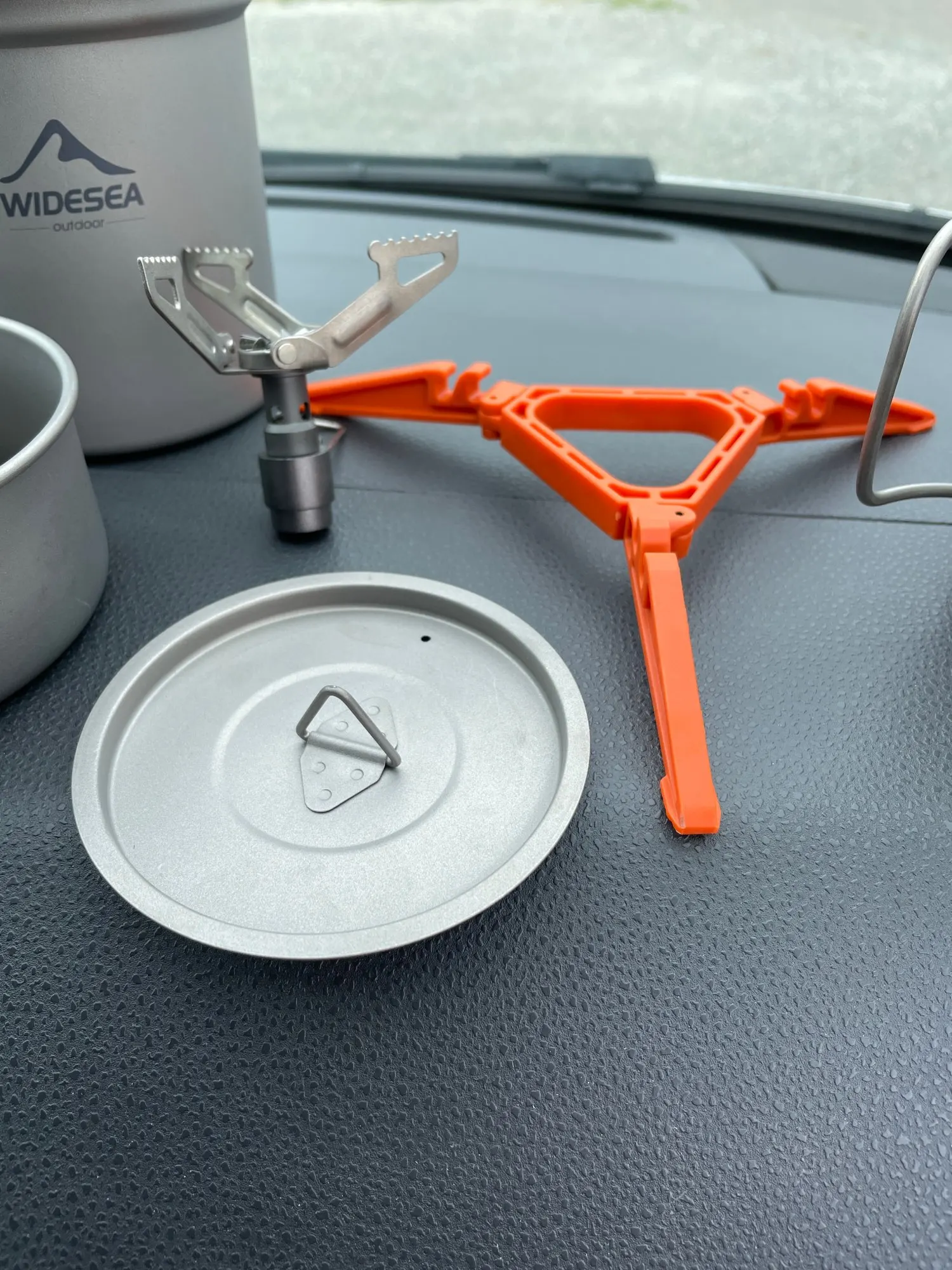 Widesea-vajilla de titanio para acampada, juego de utensilios de cocina ultraligeros con quemador de Gas, olla de cocina al aire libre, cuchara plegable para senderismo
