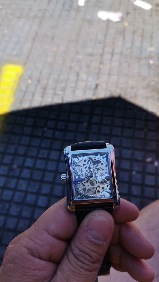WINNER-Reloj de pulsera mecánico, elegante, cuadrado, plateado hueco, automático, de cuero, informal, Unisex