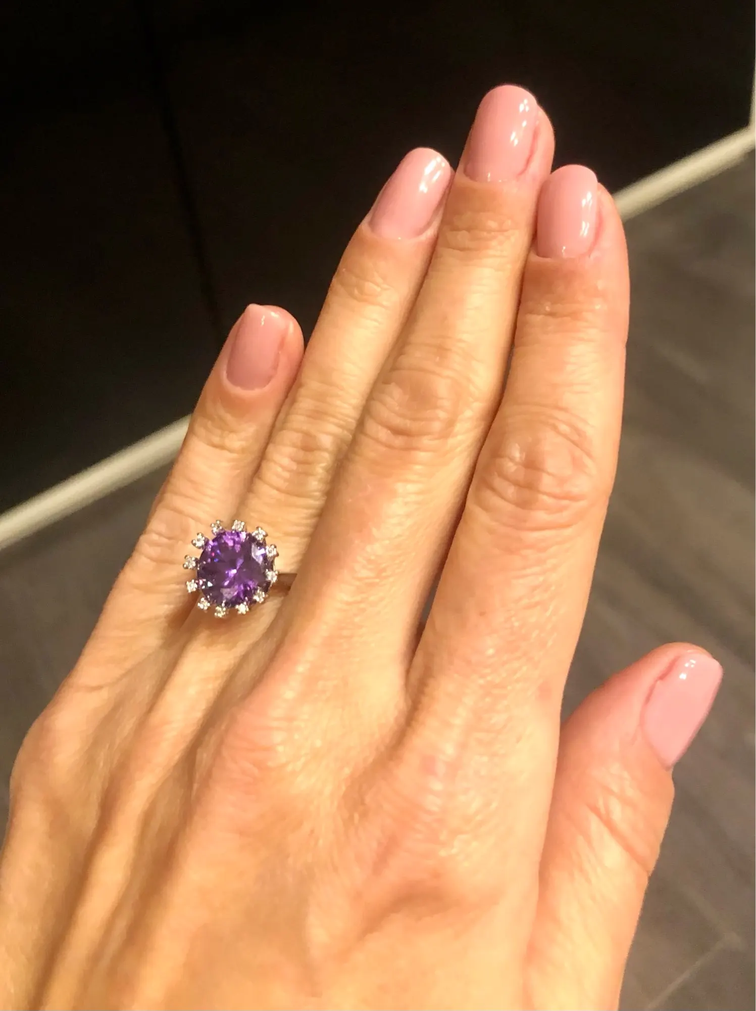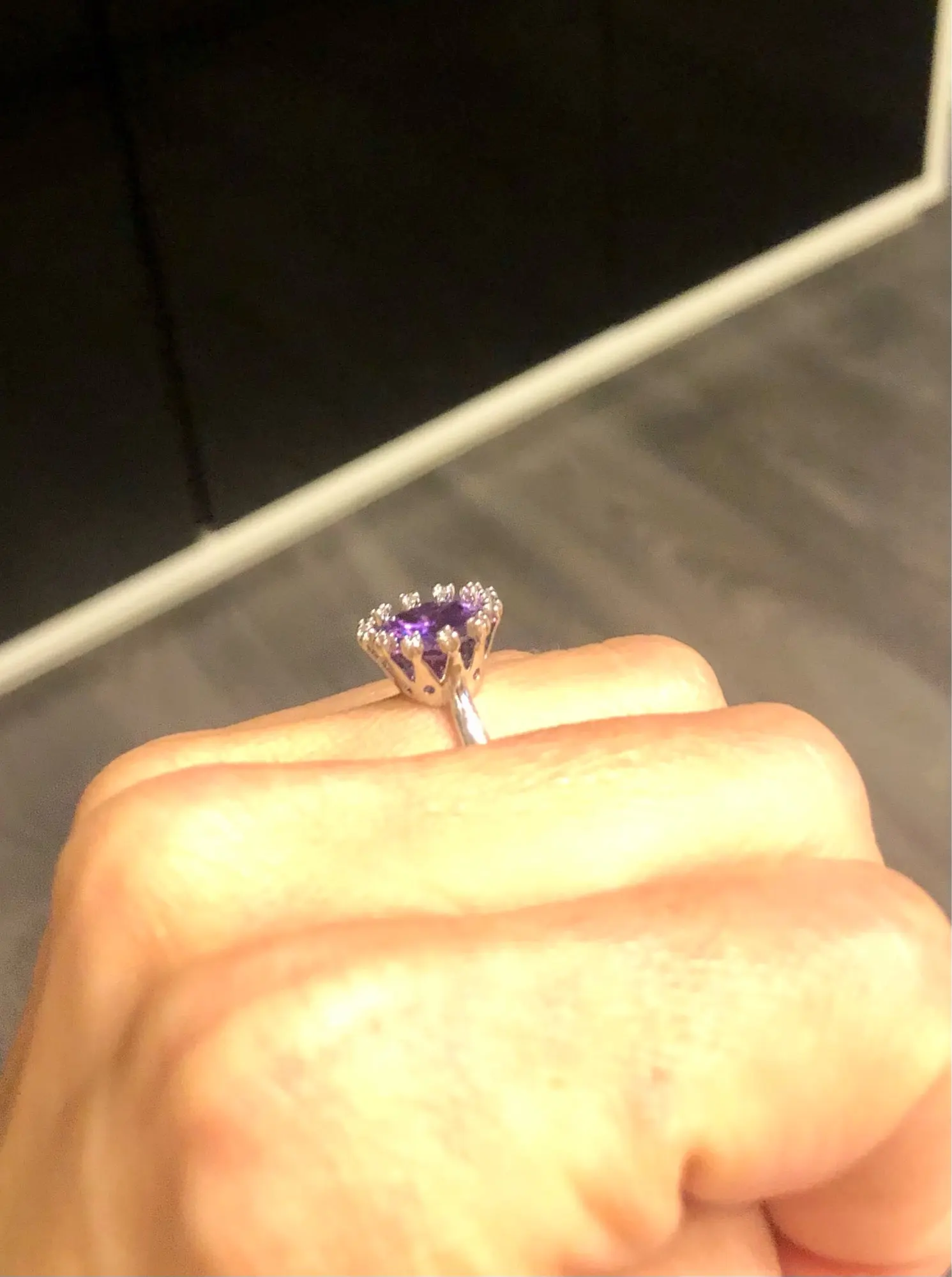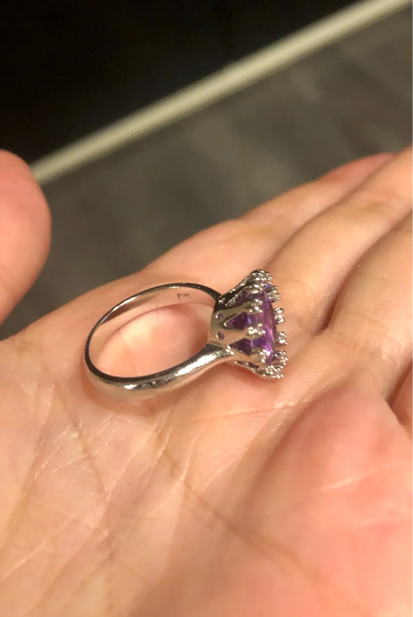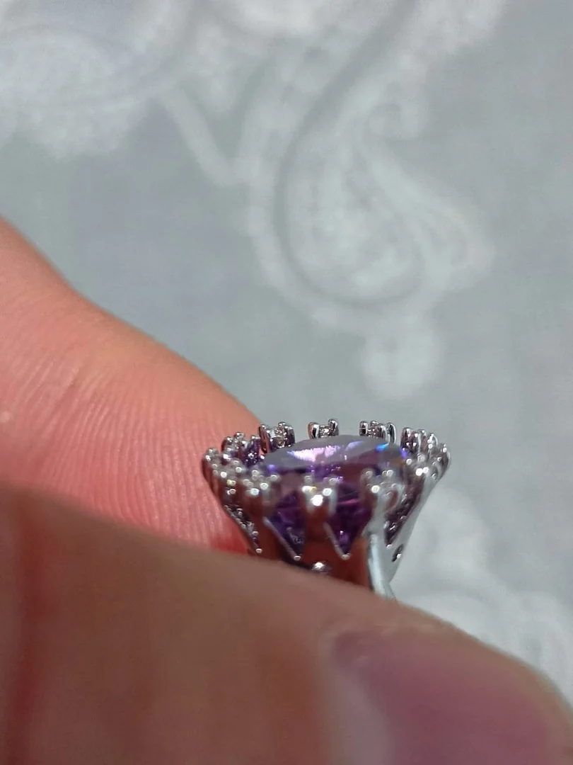 Wonderful Crown-anillo Chapado en plata, Circonia cúbica blanca, color morado, V0114