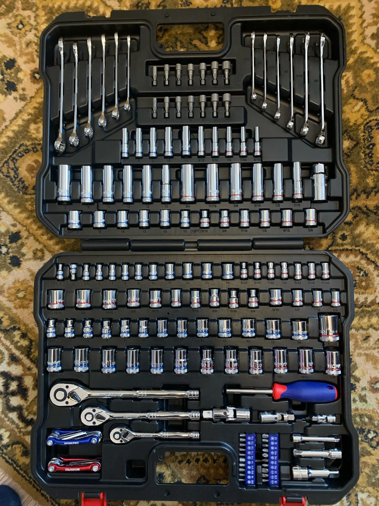 WORKPRO 123 Unid casa herramienta para reparación del coche herramienta de hembra de 1/4 "3/8" 1/2 "trinquete llaves