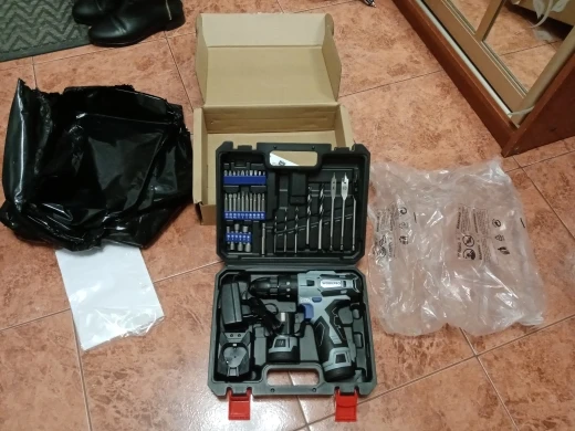 exelente calidad, muy buenos materiales y muy completo,trae taladro normal, percutor y atornillador con 18 posiciones además aceleración en el gatillo y 2 posiciones fuerza y velocidad. me encanta y biene muy bien embalado precintado y protegido. lo recomiendo