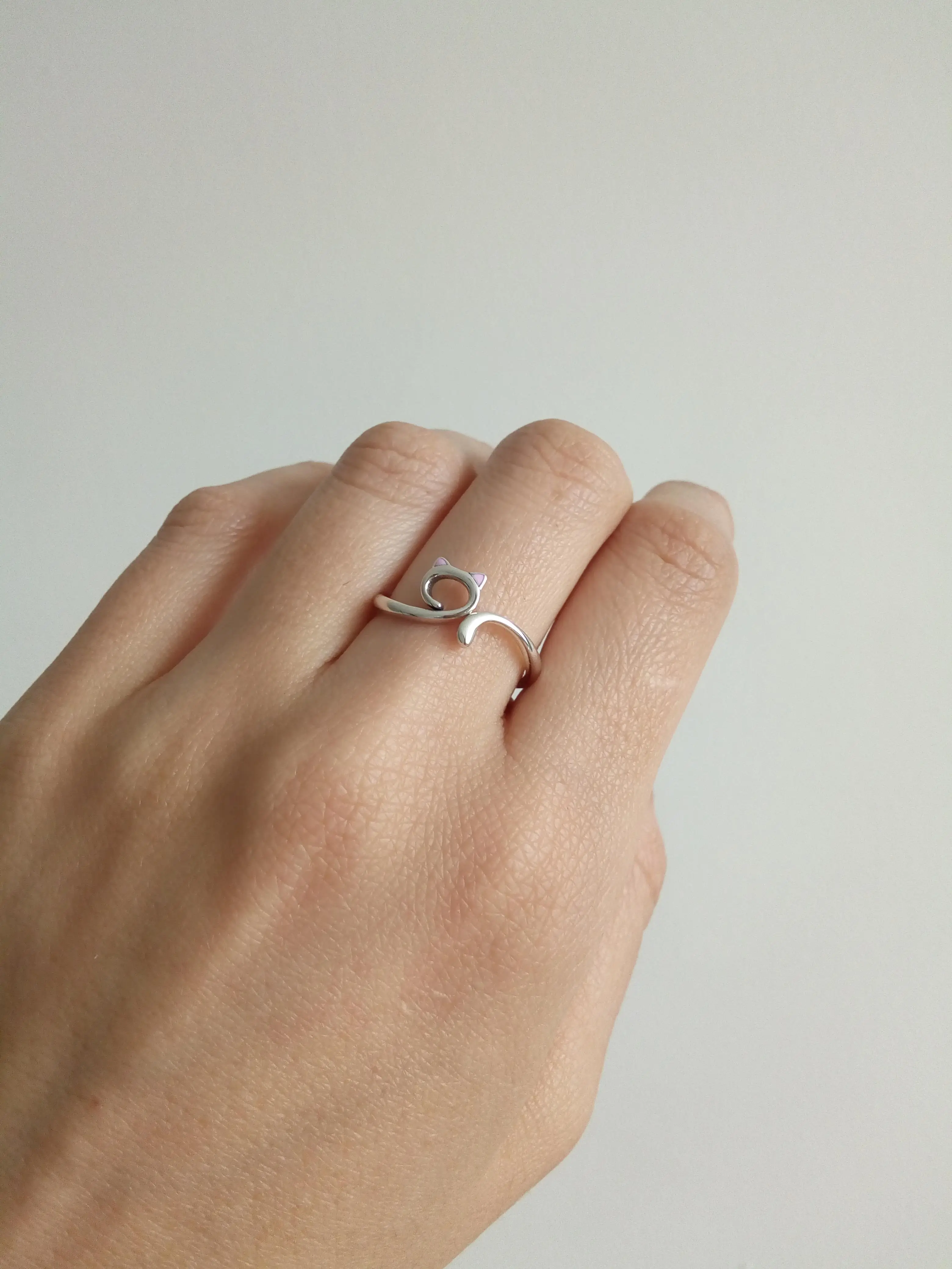 WOSTU-Anillo de dedo de gato para mujer y niña, de Plata de Ley 925 pura sólida, anillos de banda, regalo de joyas de fiesta para novia CQR341