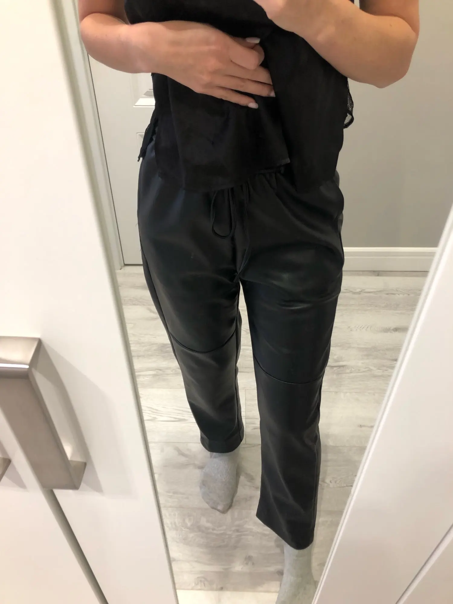 WOTWOY-pantalones de cuero suelto para mujer, pantalón con empalme de cintura alta, con cordón sólido, de piel sintética, rectos, para otoño, 2022