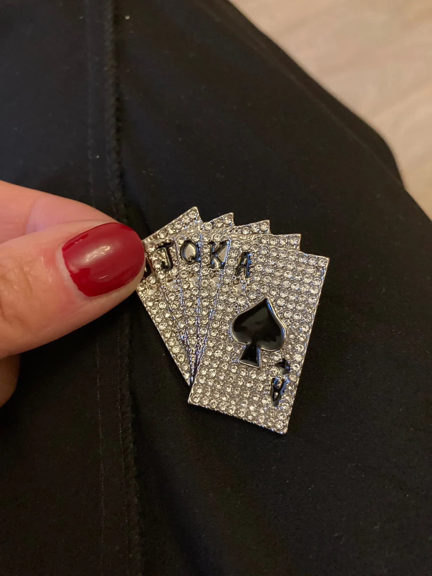 Wuli & baby-broche de póker de cristal brillante para mujer, alfileres 10 J Q K A 2022, joyería de diseño, regalo