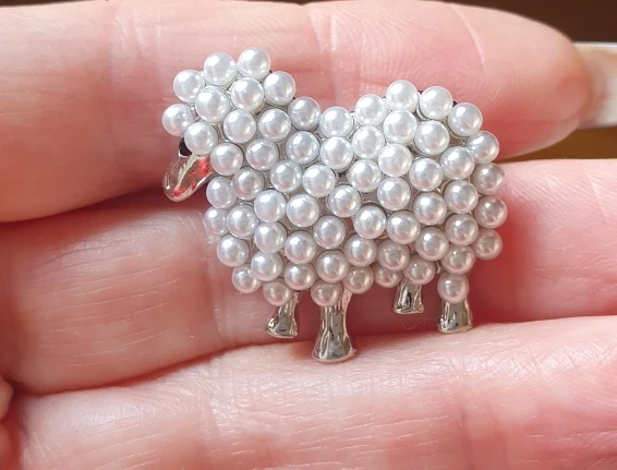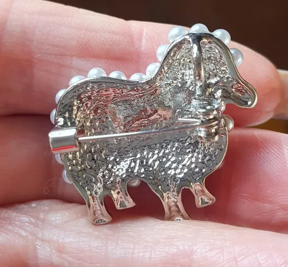 Wuli & baby-broches de oveja y perlas pequeñas para mujer, broche informal de Animal blanco y negro para fiesta, regalos