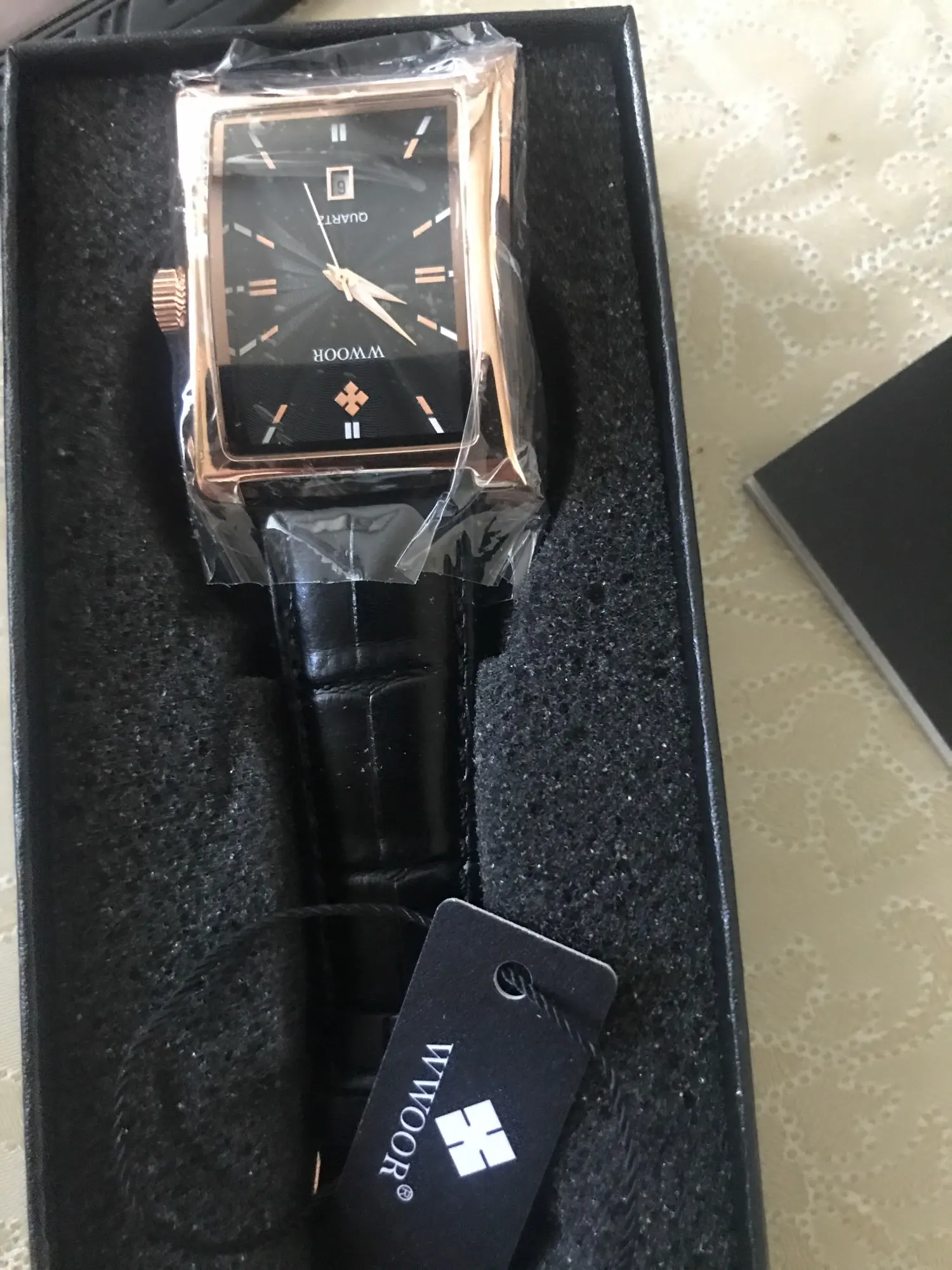 WWOOR-relojes cuadrados para hombre, pulsera de cuarzo con correa de cuero de lujo, resistente al agua, con fecha, Reloj De Pulsera De Negocios informal con caja