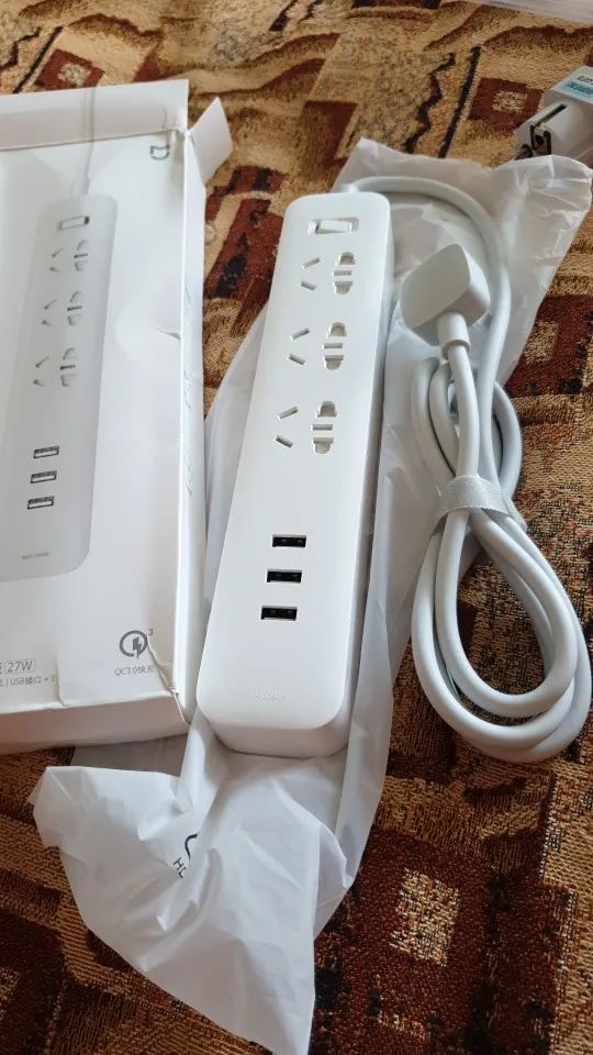 Xiaomi-tira de alimentación de carga rápida Mijia QC3.0, 27W, 3 USB + 3 enchufes, enchufe estándar, extensión de interfaz, plomo, adaptador para UE y EE. UU., novedad