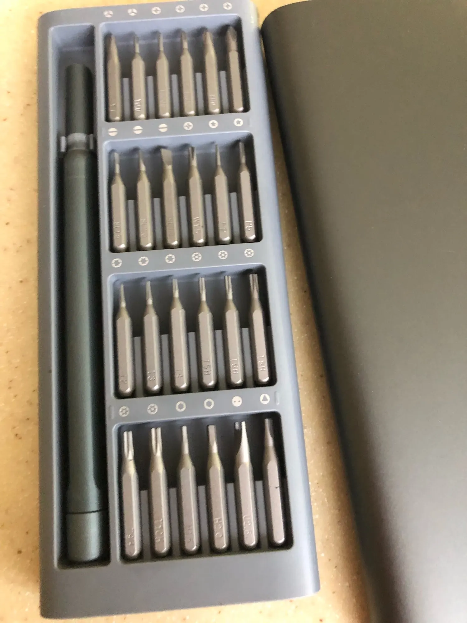 Me encanta este juego de destornilladores, es muy cómodo y lo tengo siempre a mano. Las brocas son magnéticas y de buena calidad. Ya tenía uno anterior y este lo he comprado para regalarlo.