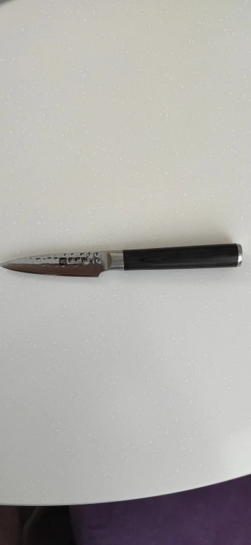 los cuchillos están súper afilador, y en la prueba de rayado contra otro damasco, rayo con gran diferencia al otro, uno de ellos lo e sumergido en café para marcar más las líneas