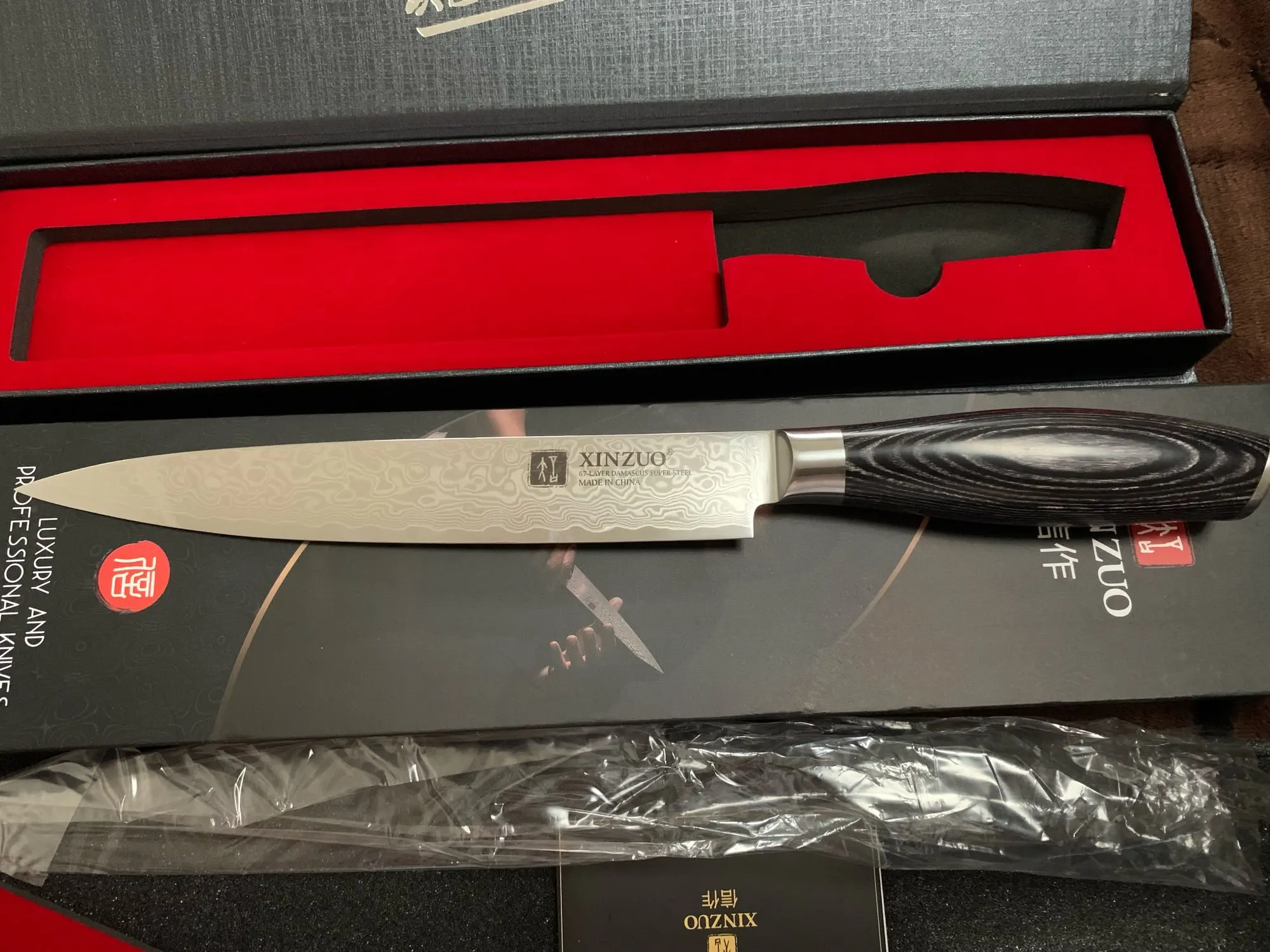 XINZUO 8 "cuchillo Cleaver chino Damasco cocina de acero inoxidable cuchillo herramientas de cocina Sashimi cuchillos mango de madera Pakka
