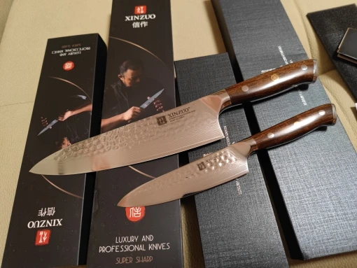 XINZUO-Juego de Cuchillos de Cocina de acero japonés de Damasco Gyutou, cuchillos de utilidad, cubiertos de cocina de acero inoxidable, 2 uds.