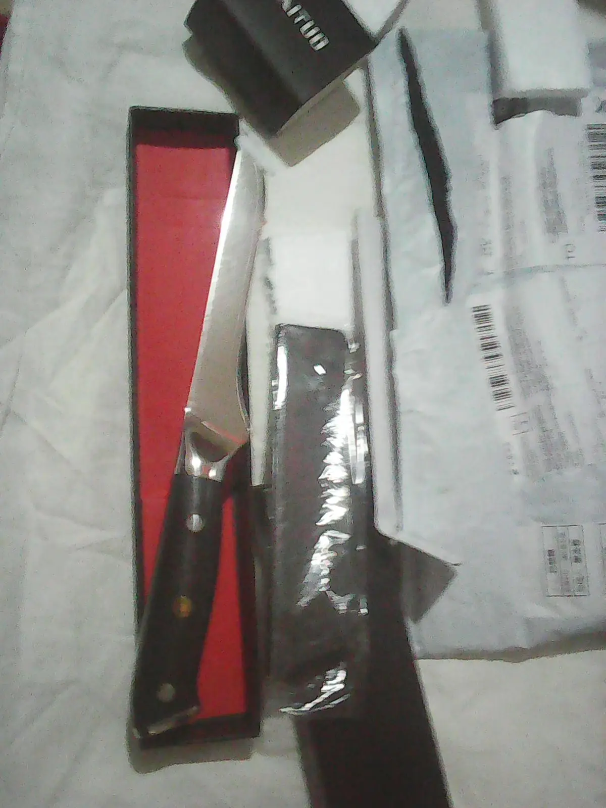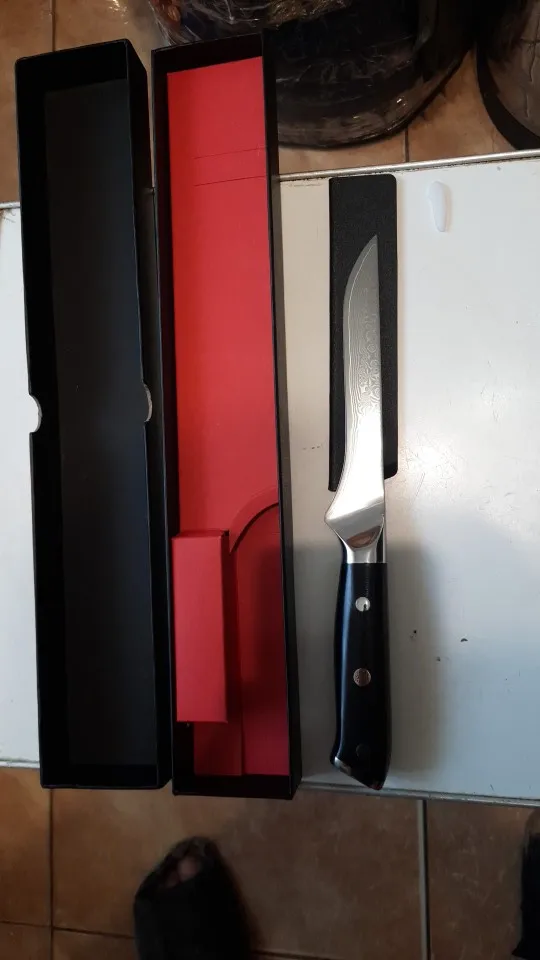 Envío rápido bien protegido, dentro de una fuerte caja de cartón y en bolsa de burbujas incluye el protector de hoja para el almacenaje y un protector de punta buen cuchillo, aunque le falta algo más de protección ante un posibles resbalamiento de la mano bien acabado, afilado suficiente a falta del suavizado final, sobre todo junto al mango peso algo elevado para un uso intensivo pero equilibrado, aunque claro, es mi opinión recomendable por rapidez de envío, calidad de acabados y diseño