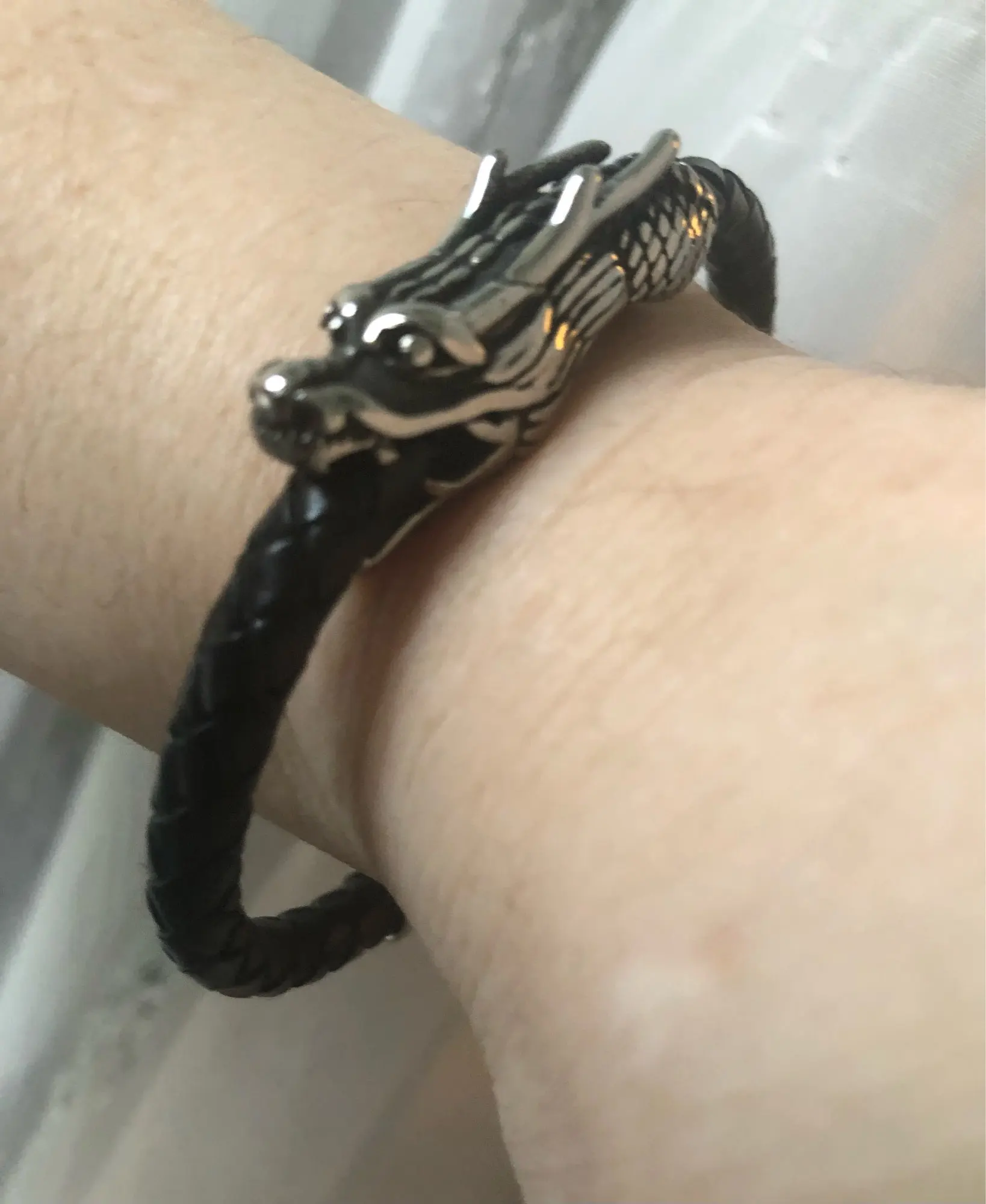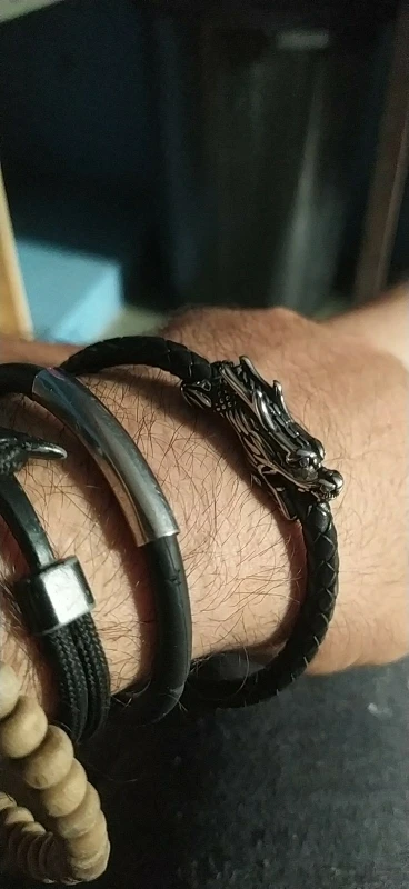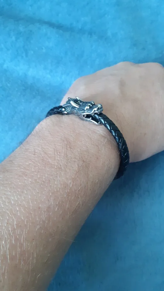 XQNI-pulsera de cuero genuino con diseño de dragón para hombre, brazalete de 19/21CM con símbolo chino Retro, con cierre magnético para regalo de fiesta de cumpleaños