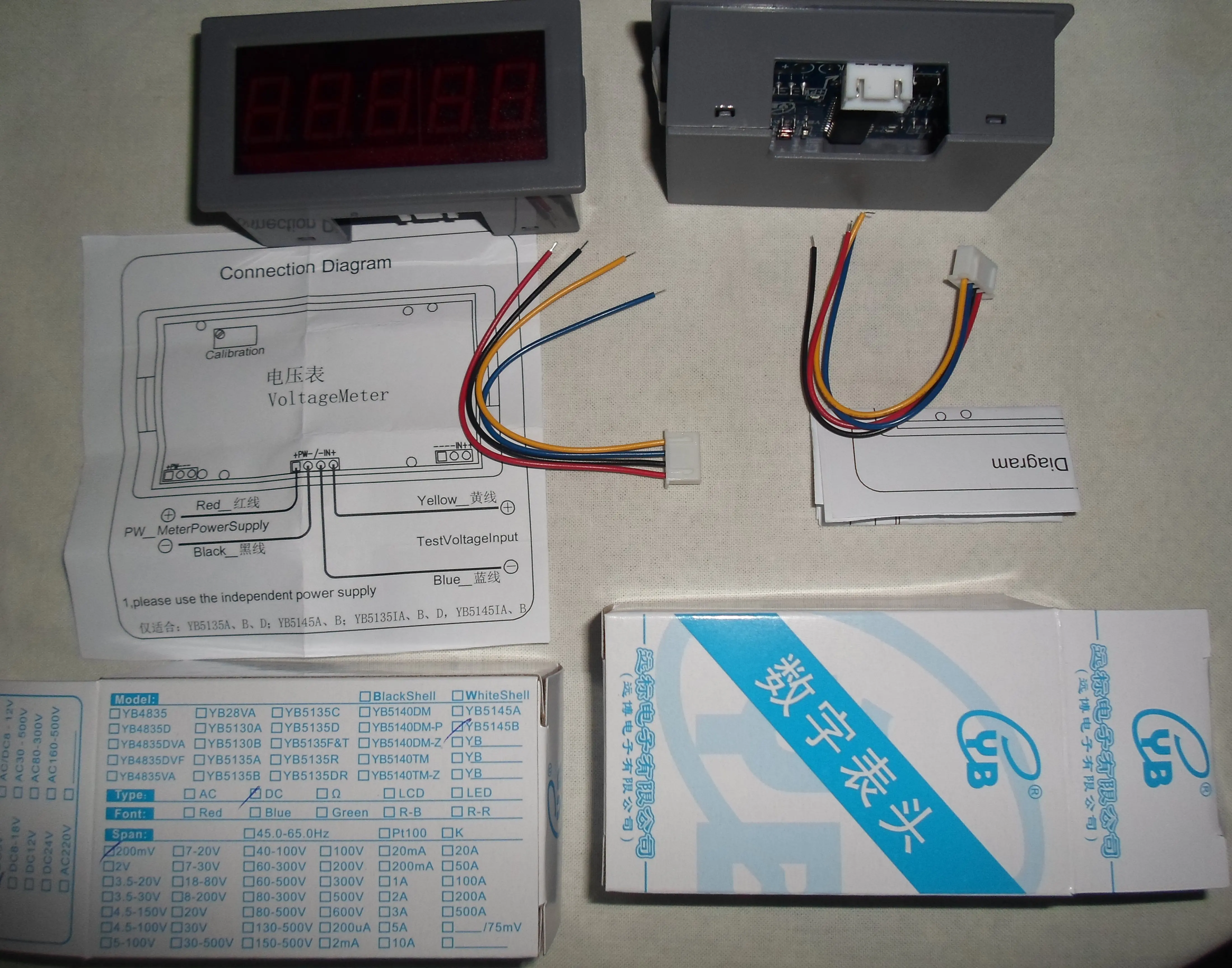 YB5145B voltímetro de CC Digital LED 4 1/2 medidor de voltaje voltímetro DC 200mV 2 V 20 V 100 V 200 medidor de Panel de 300 V 500 V 600 V 4,5 voltios