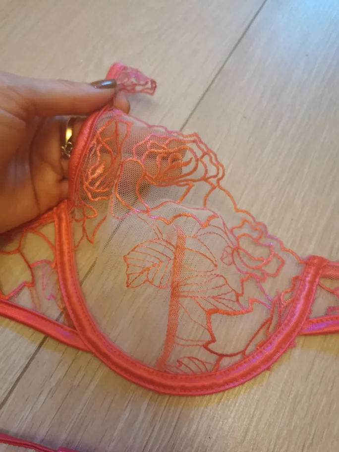 Yimunancy-Conjunto de 3 piezas de Sujetador de encaje para mujer, ropa interior Floral con aros + Tanga, lencería Sexy transparente