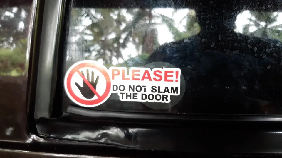 YJZT 10,3 CM × 3,9 CM 4X por favor no tires la puerta advertencia etiqueta pegatina PVC para coche 12C-0018