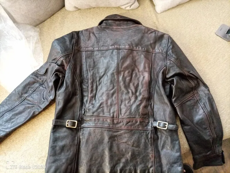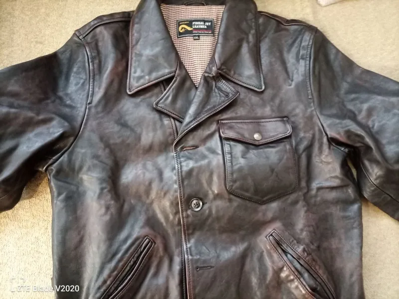 YR! Envío gratis. 2022 vintage tea core batik horsehide chaqueta, ropa de cuero de estilo casual de EE. UU., abrigo de cuero genuino delgado para hombre,