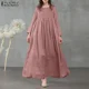 ZANZEA-Vestido largo bohemio de encaje para mujer, Vestido playero largo liso de manga acampanada con cuello de pico para fiesta de verano, caftán holgado